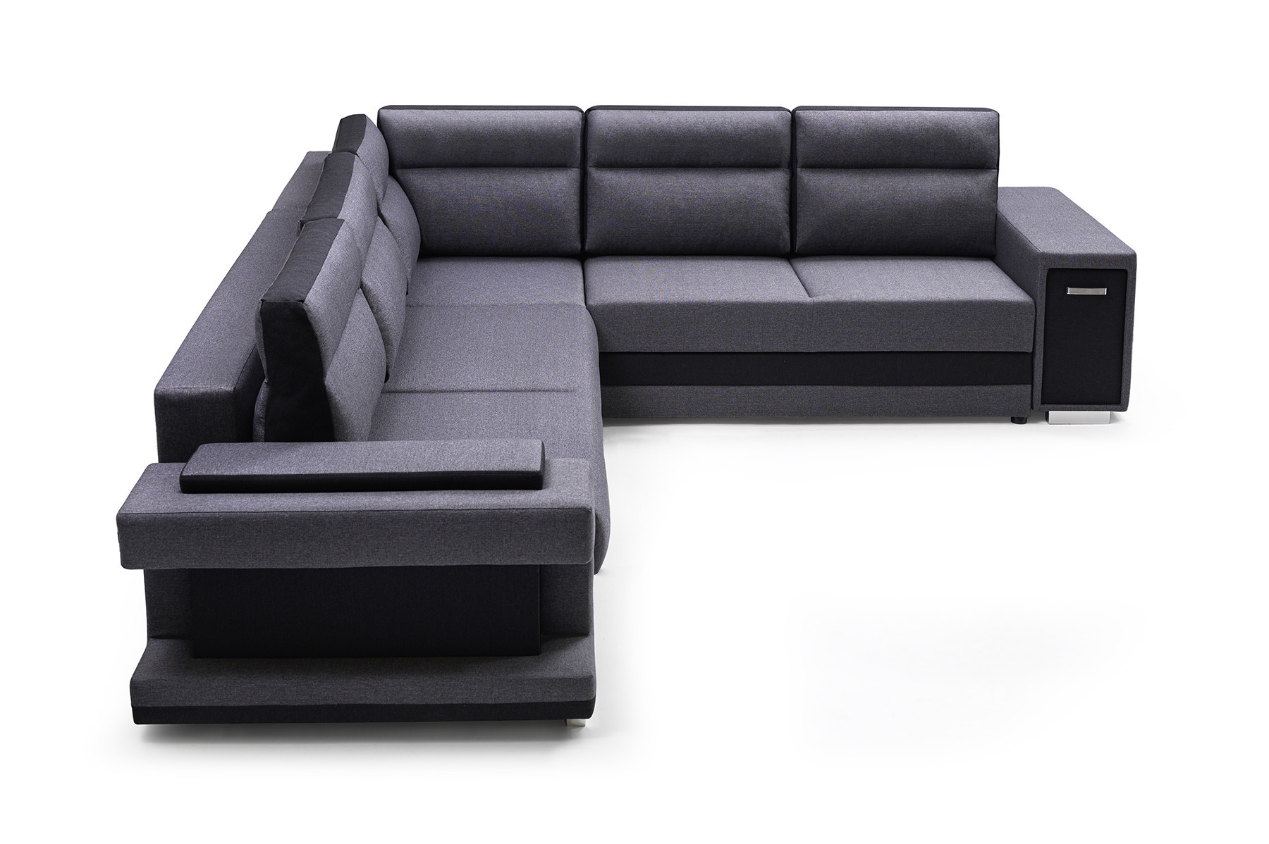 Moderný model rohovej sedacej súpravy A2 je čalúnený látkou, ktorá je k dispozícii v širokej škále farieb a typov látok.