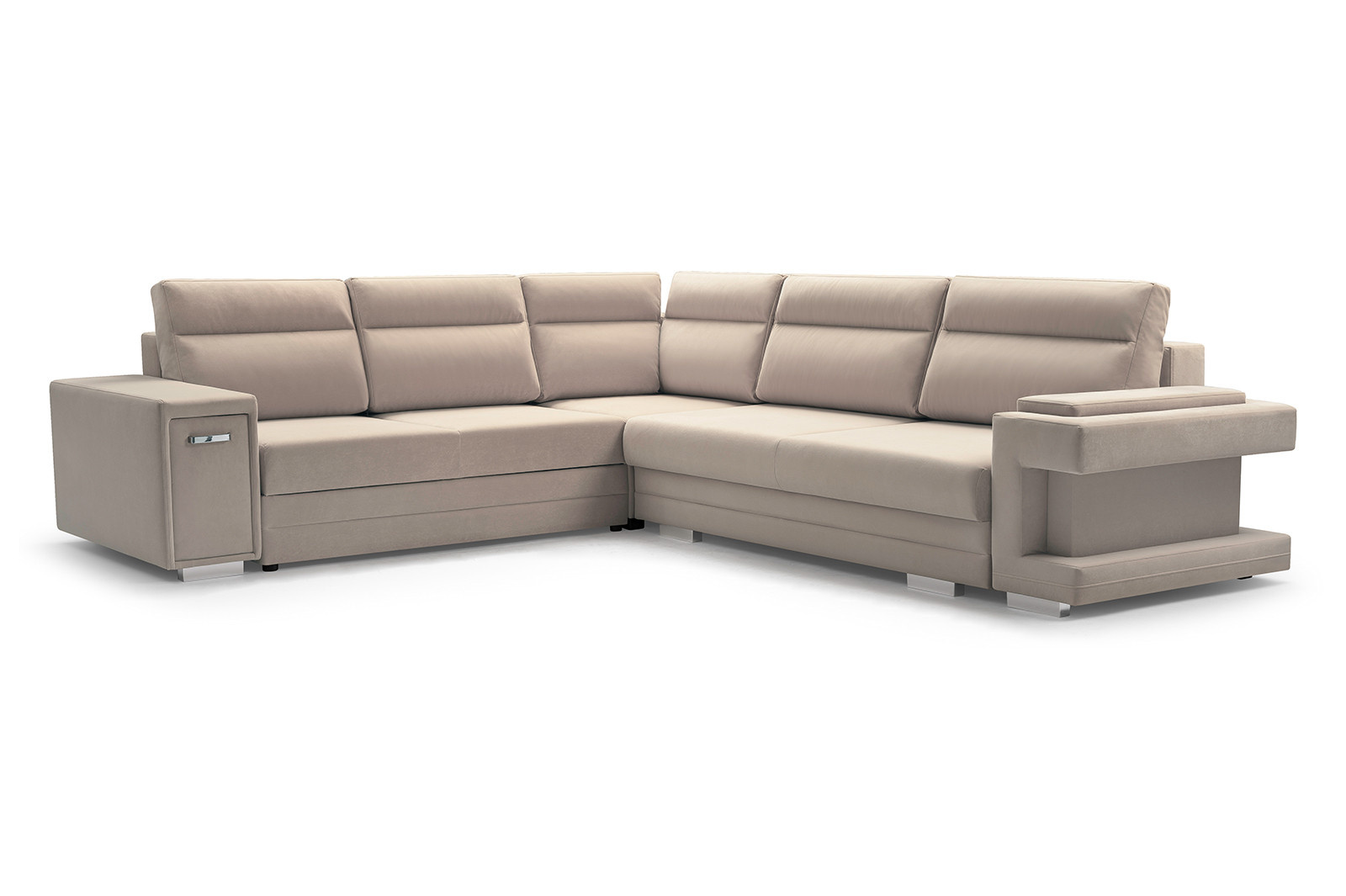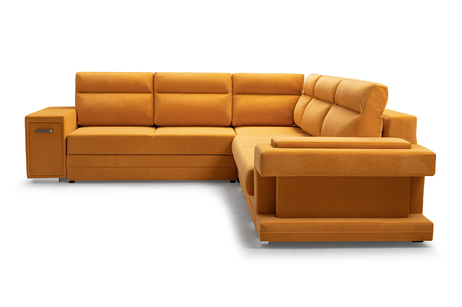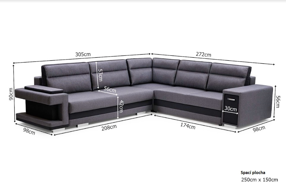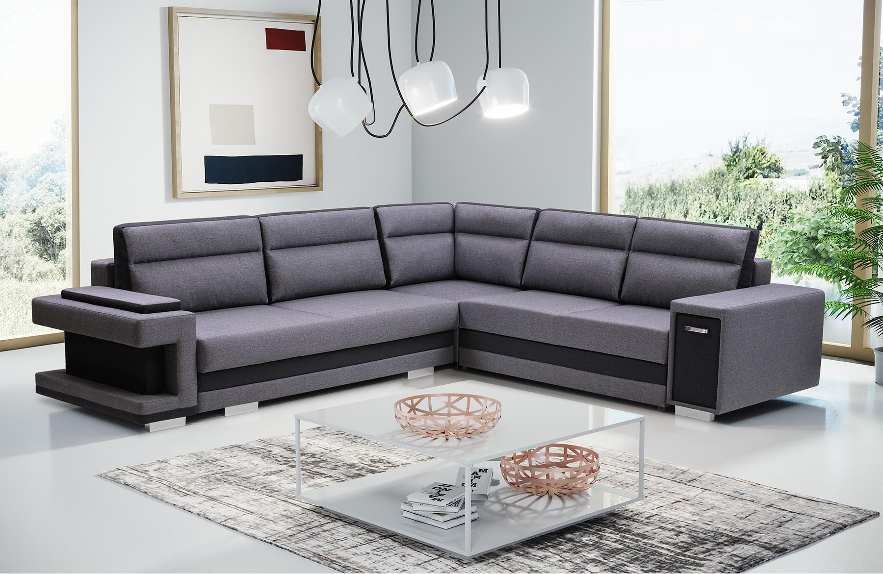 Rozkladacia pohovka A2 v tvare písmena L je k dispozícii v pravej aj ľavej verzii, takže si ju každý bude môcť prispôsobiť tvaru a rozmerom svojho interiéru. Model A2 s funkciou spania je vybavený automatickou jednotkou MOS na jednoduché rozkladanie; pod sedadlom je k dispozícii priestranný úložný priestor na lôžkoviny. Rohová pohovka stojí na drevenom ráme a pochrómovaných nožičkách, ktoré zabezpečujú odolnosť a stabilitu nábytku. Voľne stojaci kus nábytku A2 je vyplnený vlnitou pružinou a čalúnnickou penou T-30 na sedadle a operadle, ktorá zabezpečuje dostatočnú pružnosť. Súčasťou rohovej pohovky sú vankúše, ktoré možno umiestniť na operadlo - sú ozdobne prešité a dodávajú jej moderný vzhľad. Nábytok je čalúnený látkou, ktorej farby si môžete vybrať podľa individuálnych preferencií zo vzorkovníka. Rohovú pohovku s bočnicami možno umiestniť do rohu miestnosti alebo do stredu miestnosti - zadná časť nábytku je tiež esteticky čalúnená. Model A2 má dva zabudované praktické úložné priestory - jeden je k dispozícii ako výsuvná zásuvka, druhý sa nachádza v jednej z podrúčok. Rohová sedačka pre viac ako jednu osobu nielenže podčiarkne jedinečný charakter zariadeného interiéru, ale poskytne pohodlie a komfort aj počas mnohých hodín odpočinku po náročnom dni.