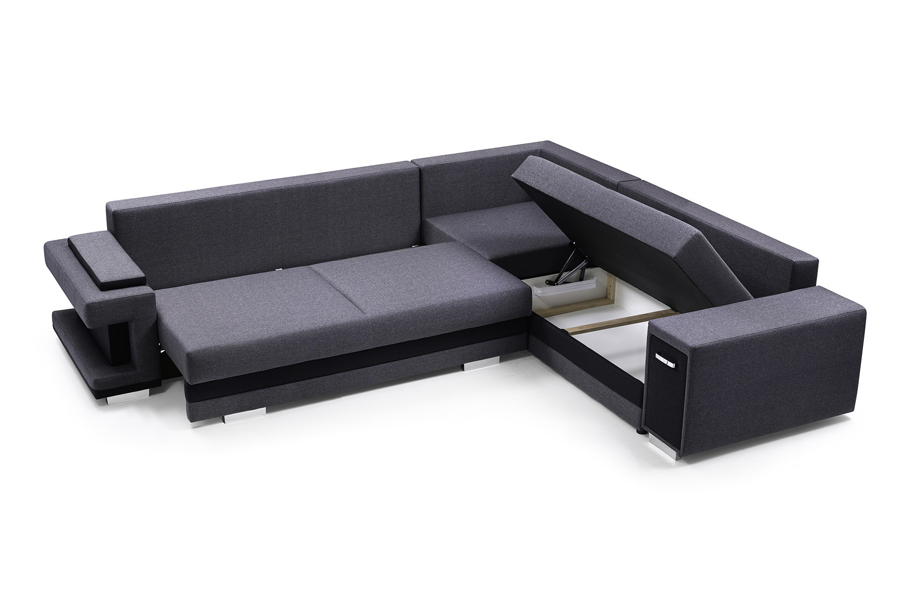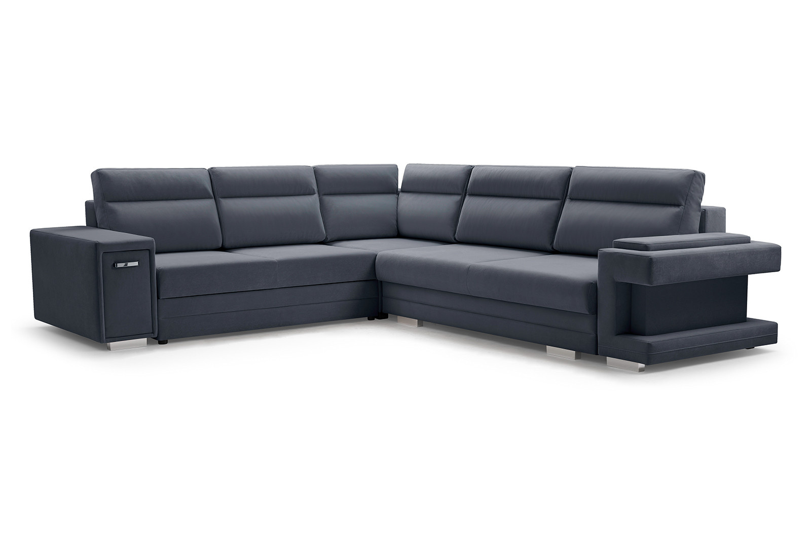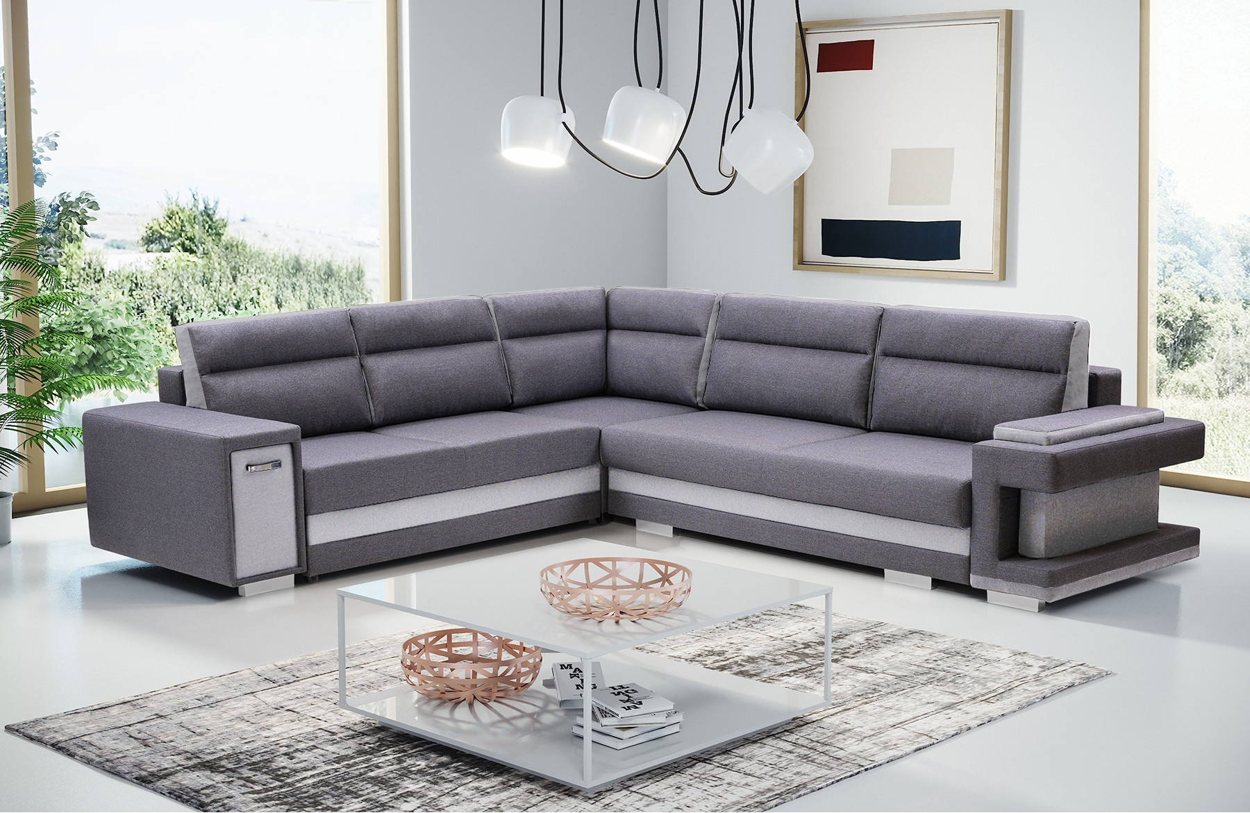 Rozkladacia pohovka A2 v tvare písmena L je k dispozícii v pravej aj ľavej verzii, takže si ju každý bude môcť prispôsobiť tvaru a rozmerom svojho interiéru. Model A2 s funkciou spania je vybavený automatickou jednotkou MOS na jednoduché rozkladanie; pod sedadlom je k dispozícii priestranný úložný priestor na lôžkoviny. Rohová pohovka stojí na drevenom ráme a pochrómovaných nožičkách, ktoré zabezpečujú odolnosť a stabilitu nábytku. Voľne stojaci kus nábytku A2 je vyplnený vlnitou pružinou a čalúnnickou penou T-30 na sedadle a operadle, ktorá zabezpečuje dostatočnú pružnosť. Súčasťou rohovej pohovky sú vankúše, ktoré možno umiestniť na operadlo - sú ozdobne prešité a dodávajú jej moderný vzhľad. Nábytok je čalúnený látkou, ktorej farby si môžete vybrať podľa individuálnych preferencií zo vzorkovníka. Rohovú pohovku s bočnicami možno umiestniť do rohu miestnosti alebo do stredu miestnosti - zadná časť nábytku je tiež esteticky čalúnená. Model A2 má dva zabudované praktické úložné priestory - jeden je k dispozícii ako výsuvná zásuvka, druhý sa nachádza v jednej z podrúčok. Rohová sedačka pre viac ako jednu osobu nielenže podčiarkne jedinečný charakter zariadeného interiéru, ale poskytne pohodlie a komfort aj počas mnohých hodín odpočinku po náročnom dni.