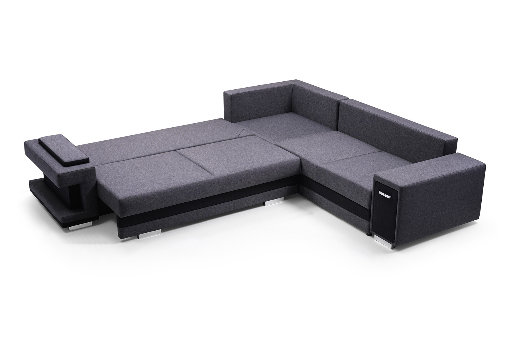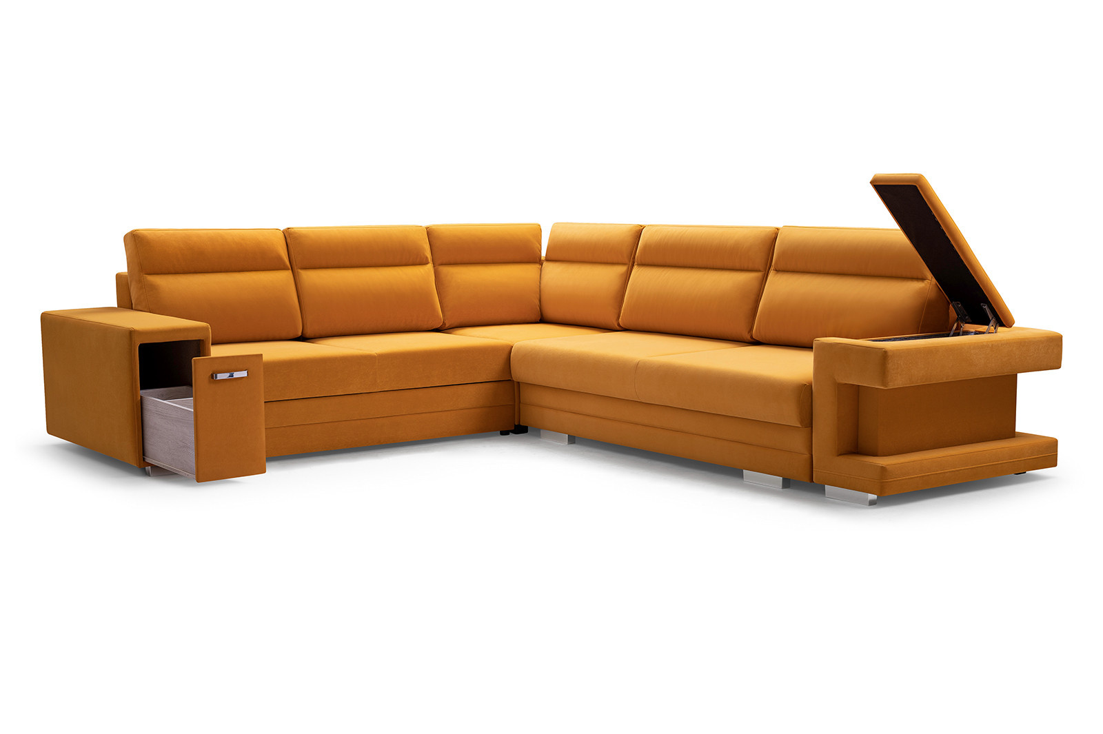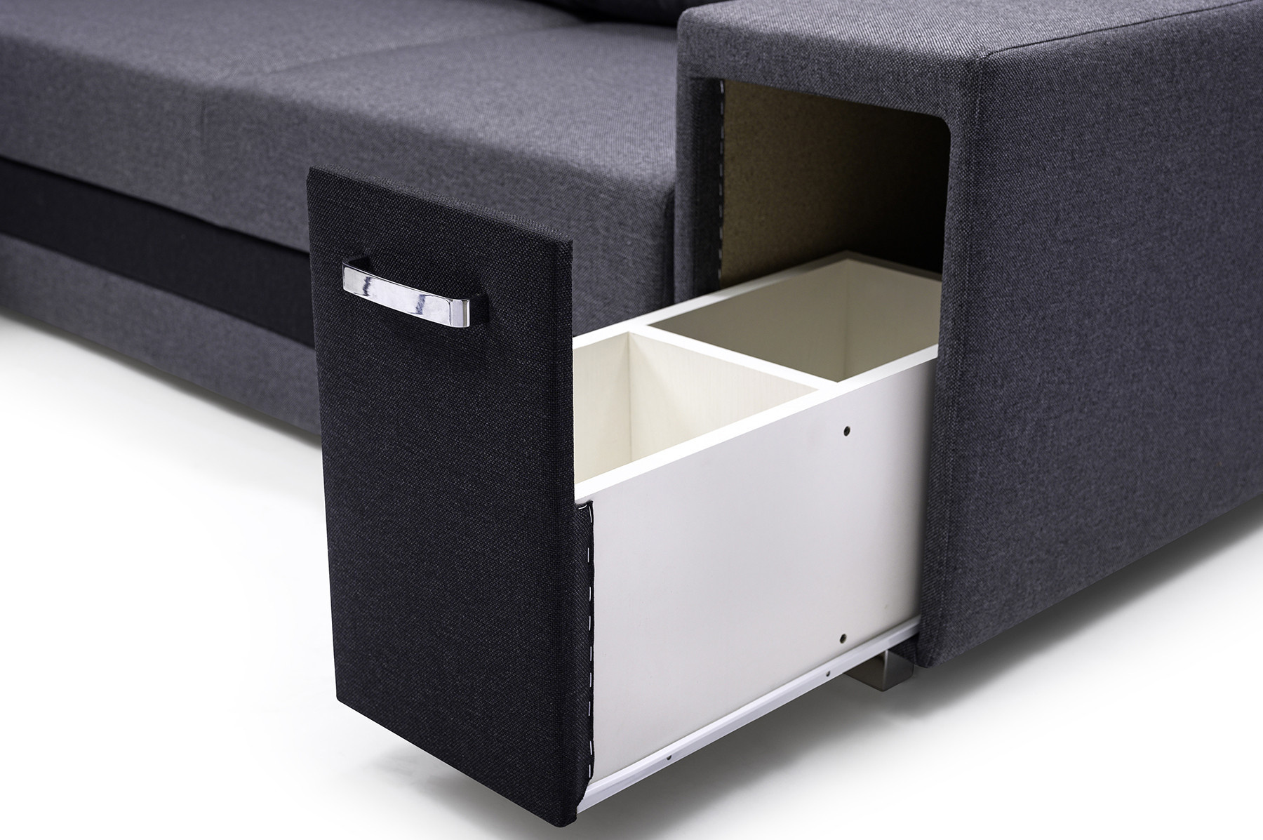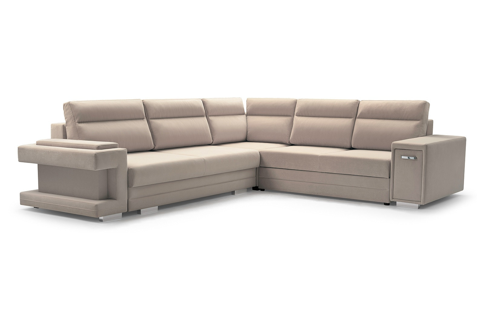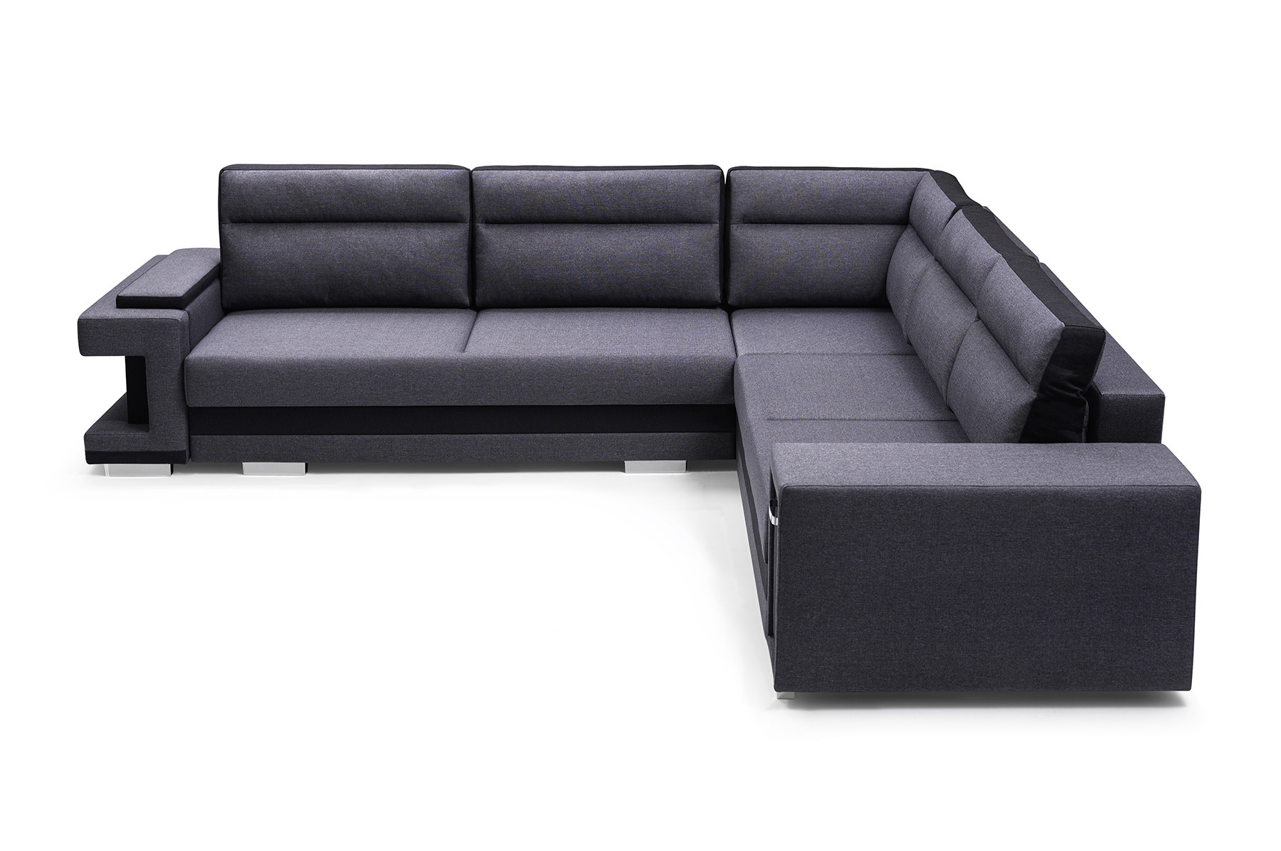 Rozkladacia pohovka A2 v tvare písmena L je k dispozícii v pravej aj ľavej verzii, takže si ju každý bude môcť prispôsobiť tvaru a rozmerom svojho interiéru. Model A2 s funkciou spania je vybavený automatickou jednotkou MOS na jednoduché rozkladanie; pod sedadlom je k dispozícii priestranný úložný priestor na lôžkoviny. Rohová pohovka stojí na drevenom ráme a pochrómovaných nožičkách, ktoré zabezpečujú odolnosť a stabilitu nábytku. Voľne stojaci kus nábytku A2 je vyplnený vlnitou pružinou a čalúnnickou penou T-30 na sedadle a operadle, ktorá zabezpečuje dostatočnú pružnosť. Súčasťou rohovej pohovky sú vankúše, ktoré možno umiestniť na operadlo - sú ozdobne prešité a dodávajú jej moderný vzhľad. Nábytok je čalúnený látkou, ktorej farby si môžete vybrať podľa individuálnych preferencií zo vzorkovníka. Rohovú pohovku s bočnicami možno umiestniť do rohu miestnosti alebo do stredu miestnosti - zadná časť nábytku je tiež esteticky čalúnená. Model A2 má dva zabudované praktické úložné priestory - jeden je k dispozícii ako výsuvná zásuvka, druhý sa nachádza v jednej z podrúčok. Rohová sedačka pre viac ako jednu osobu nielenže podčiarkne jedinečný charakter zariadeného interiéru, ale poskytne pohodlie a komfort aj počas mnohých hodín odpočinku po náročnom dni.