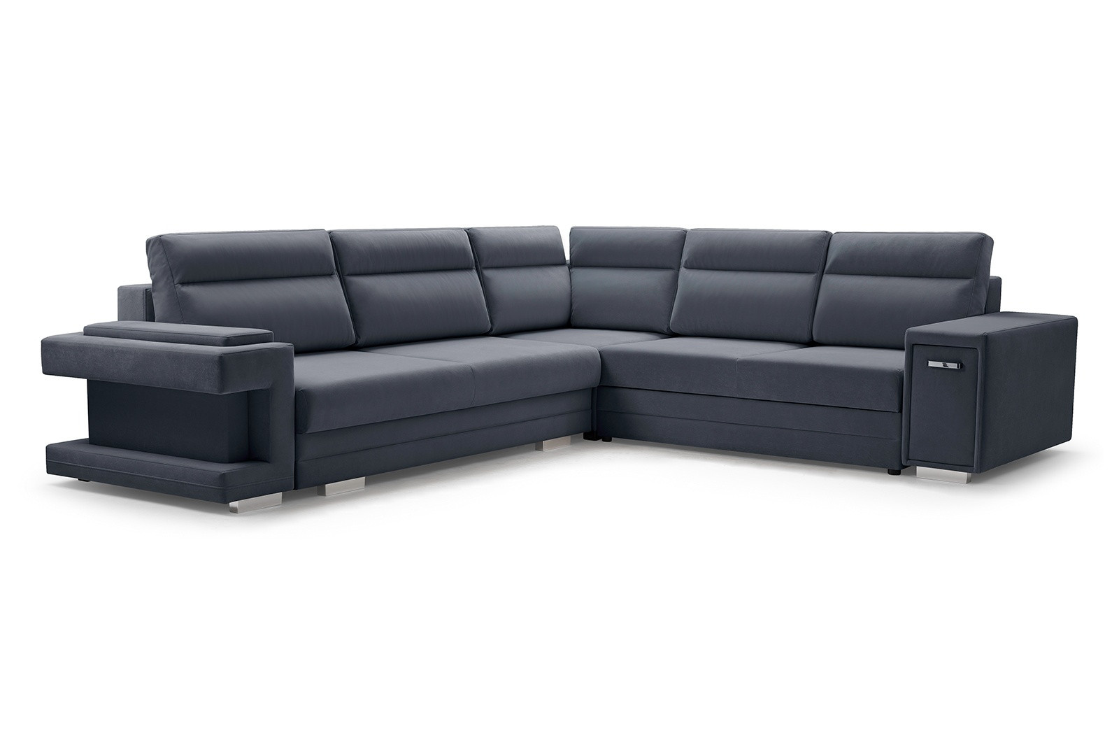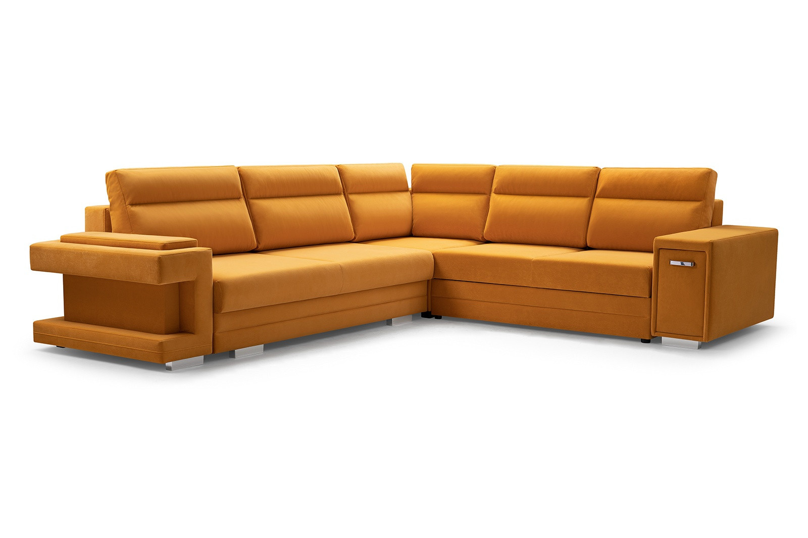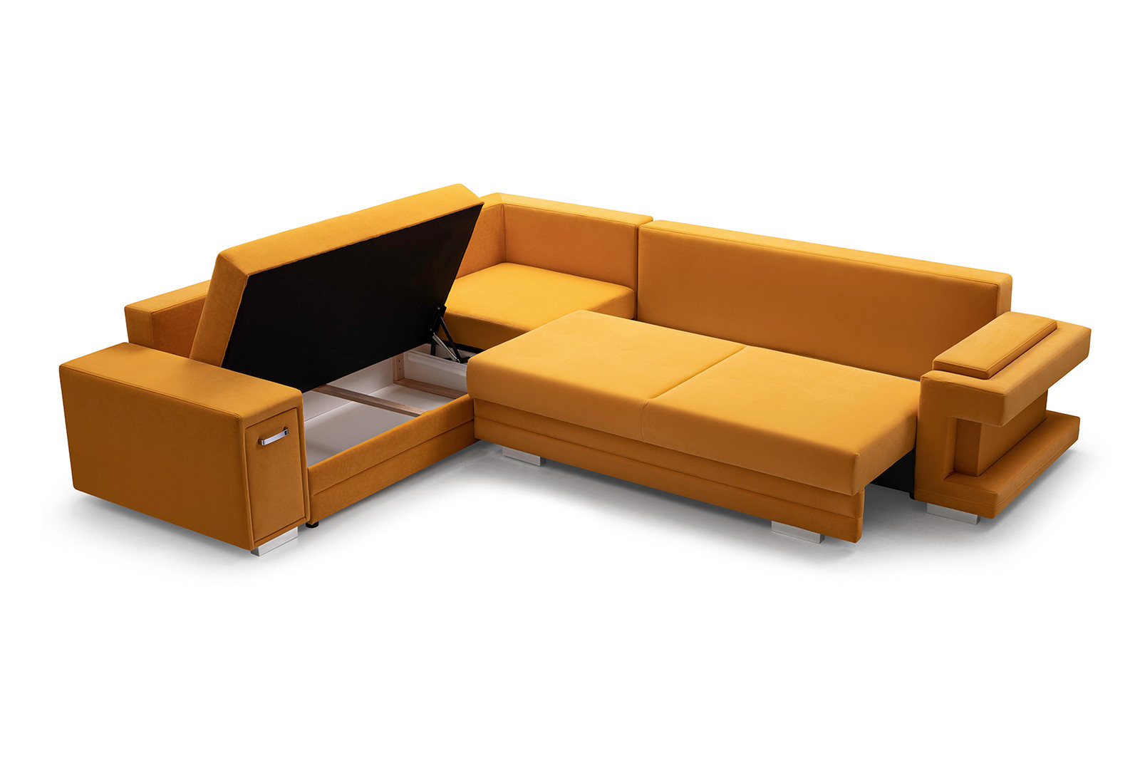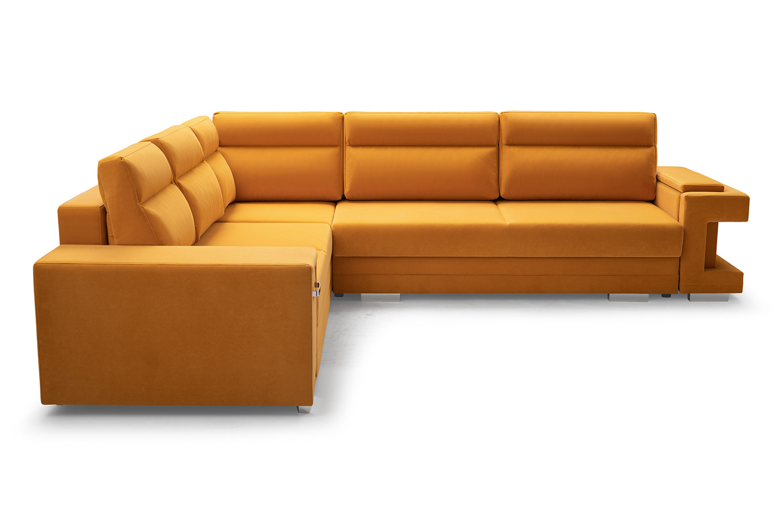 Rozkladacia pohovka A2 v tvare písmena L je k dispozícii v pravej aj ľavej verzii, takže si ju každý bude môcť prispôsobiť tvaru a rozmerom svojho interiéru. Model A2 s funkciou spania je vybavený automatickou jednotkou MOS na jednoduché rozkladanie; pod sedadlom je k dispozícii priestranný úložný priestor na lôžkoviny. Rohová pohovka stojí na drevenom ráme a pochrómovaných nožičkách, ktoré zabezpečujú odolnosť a stabilitu nábytku. Voľne stojaci kus nábytku A2 je vyplnený vlnitou pružinou a čalúnnickou penou T-30 na sedadle a operadle, ktorá zabezpečuje dostatočnú pružnosť. Súčasťou rohovej pohovky sú vankúše, ktoré možno umiestniť na operadlo - sú ozdobne prešité a dodávajú jej moderný vzhľad. Nábytok je čalúnený látkou, ktorej farby si môžete vybrať podľa individuálnych preferencií zo vzorkovníka. Rohovú pohovku s bočnicami možno umiestniť do rohu miestnosti alebo do stredu miestnosti - zadná časť nábytku je tiež esteticky čalúnená. Model A2 má dva zabudované praktické úložné priestory - jeden je k dispozícii ako výsuvná zásuvka, druhý sa nachádza v jednej z podrúčok. Rohová sedačka pre viac ako jednu osobu nielenže podčiarkne jedinečný charakter zariadeného interiéru, ale poskytne pohodlie a komfort aj počas mnohých hodín odpočinku po náročnom dni.