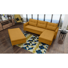 Štýlová pohovka AREO s praktickým taburetom je kus nábytku, ktorý upúta pozornosť svojím ozdobným prešívaním. Rohová pohovka s praktickými bočnicami je k dispozícii v pravom alebo ľavom prevedení podľa vášho výberu. Pridaním taburetu k rohovej pohovke môžete získať funkciu spania. Rohová pohovka dokončená v škandinávskom štýle je kus nábytku s čalúneným operadlom, t. j. samostatne stojaci kus nábytku, vďaka čomu možno rohovú pohovku umiestniť nielen k stene miestnosti, ale aj do jej strednej časti. Podstavec prezentovanej rohovej pohovky a taburetu je vyrobený z prírodného dreva. Sedák je vyplnený vlnitou pružinou, ktorá pomáha udržiavať primeranú pružnosť konštrukcie - ani pri opakovanom používaní nevznikajú nevzhľadné deformácie. K rohovej pohovke a pufu AREO sa dodávajú dva dekoračné vankúše. Praktická taburetka má úložný priestor na posteľnú bielizeň alebo drobné každodenné doplnky. Nábytok AREO je možné čalúniť látkou, ktorej farby si môžete vybrať z dostupnej vzorkovnice.