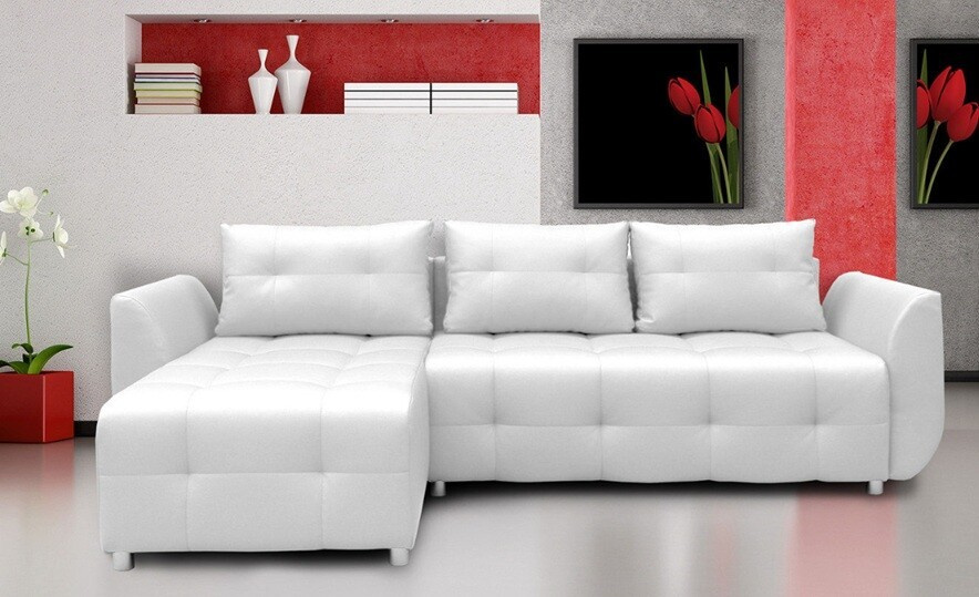 Rohová univerzálna sedacia súprava SARA, Biela Ekokoža 17