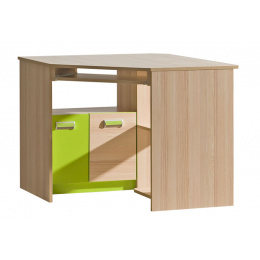 Rohový písací stôl Lorento je k dispozícii vo farebnom prevedení jaseň Coimbra Lemon alebo Violet a teraz aj vo farebnom prevedení brilantná biela + dub Nash.