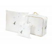 Kolekcia ROYAL má jedinečné zloženie z ultraľahkého vybraného 100% poľského husieho peria, zušľachteného procesom EEC, a najjemnejšieho batistu - 100% bavlny s gramážou 70 g/m2, ktorá zaručuje jedinečnú ľahkosť a pohodlie. Táto exkluzívna kolekcia spája ušľachtilosť egyptskej makrobavlny pestovanej v ideálnych podmienkach údolia Nílu, ktorá je známa svojimi dlhými a mäkkými vláknami získanými ručným zberom, čo zaručuje jedinečnú kvalitu a trvanlivosť materiálu. Batist, ktorý sa vyznačuje jemným leskom a výnimočnou mäkkosťou, v kombinácii s prémiovým husím perím vytvára prikrývky a vankúše výnimočnej mäkkosti, ktoré možno prať v práčke do 60 stupňov. C. Táto kolekcia zabalená v elegantnom opakovane použiteľnom obale symbolizuje kombináciu kvality, ľahkosti a radosti z používania.