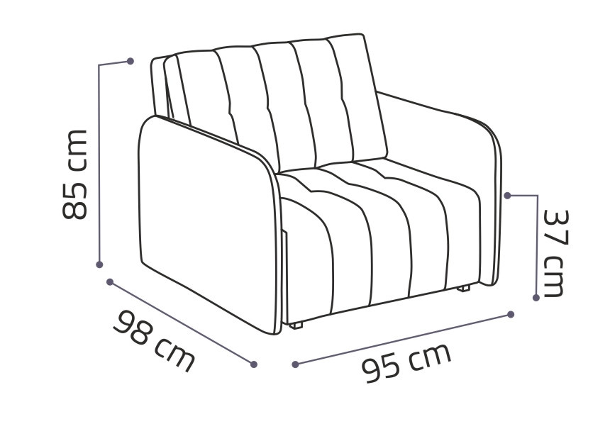 Rozkladacie kreslo Vivian je vhodné do detskej, študentskej alebo hosťovskej izby. Jednoduchým rozložením pomocou stroja získate posteľ na príležitostné prenocovanie návštevy alebo kamaráta vašich detí. Výplň sedáku tvoria vlnité pružiny v kombinácii s PUR penou. Kreslo je čalúnené kvalitnou látkou s možnosťou výberu z niekoľkých módnych odtieňov a veľmi elegantným prešívaním. Kreslo má aj nepostrádateľný úložný priestor, ktorý môžete využiť napr. na prikrývku a vankúš. Ostatné zobrazené príslušenstvo a dekorácie nie sú súčasťou balenia. Zobrazenie farieb na fotografii sa môže líšiť od skutočnosti.