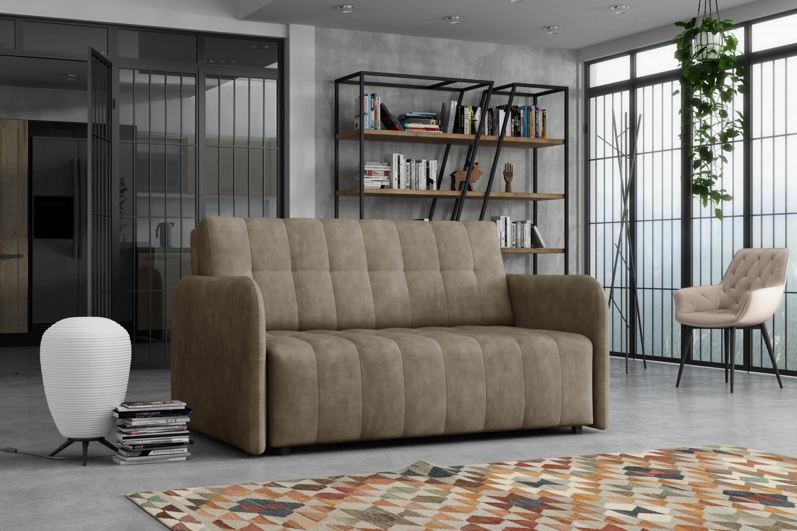 Rozkladacie kreslo Vivian je vhodné do detskej, študentskej alebo hosťovskej izby. Jednoduchým rozložením pomocou stroja získate posteľ na príležitostné prenocovanie návštevy alebo kamaráta vašich detí. Výplň sedáku tvoria vlnité pružiny v kombinácii s PUR penou. Kreslo je čalúnené kvalitnou látkou s možnosťou výberu z niekoľkých módnych odtieňov a veľmi elegantným prešívaním. Kreslo má aj nepostrádateľný úložný priestor, ktorý môžete využiť napr. na prikrývku a vankúš. Ostatné zobrazené príslušenstvo a dekorácie nie sú súčasťou balenia. Zobrazenie farieb na fotografii sa môže líšiť od skutočnosti.