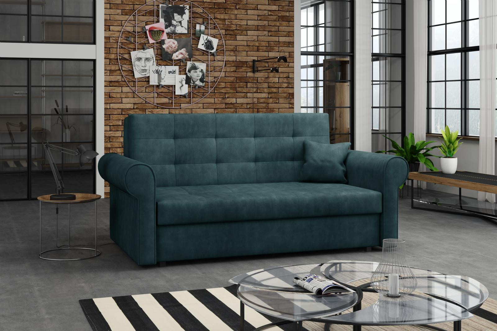 Vďaka svojim rozmerom je rozkladaciapohovka Vivian vhodná aj do menších miestností. Uplatnenie nájde nielen v obývacej izbe, ale aj v detskej, študentskej alebo hosťovskej izbe. Jednoduchým rozložením pomocou stroja získate posteľ na príležitostné prenocovanie návštev. Výplň sedáku tvoria vlnité pružiny v kombinácii s PUR penou. Pohovka je čalúnená kvalitnou látkou a je k dispozícii v niekoľkých módnych odtieňoch. pohovka má aj nepostrádateľný úložný priestor, ktorý môžete využiť napríklad. na prikrývku a vankúš. Cena zahŕňa 1 dekoračný vankúš. Ostatné zobrazené dekorácie nie sú súčasťou balenia. Zobrazenie farieb na fotografii sa môže líšiť od skutočnosti.