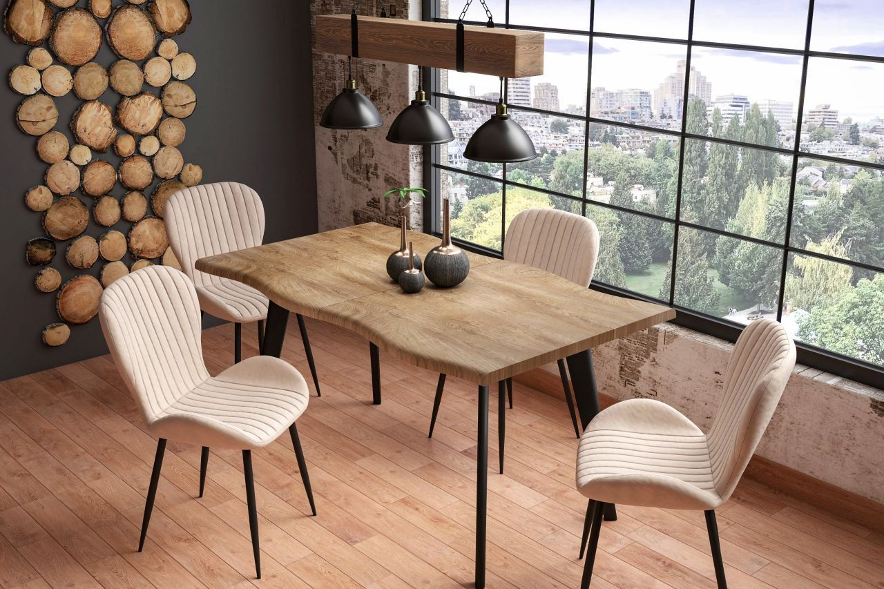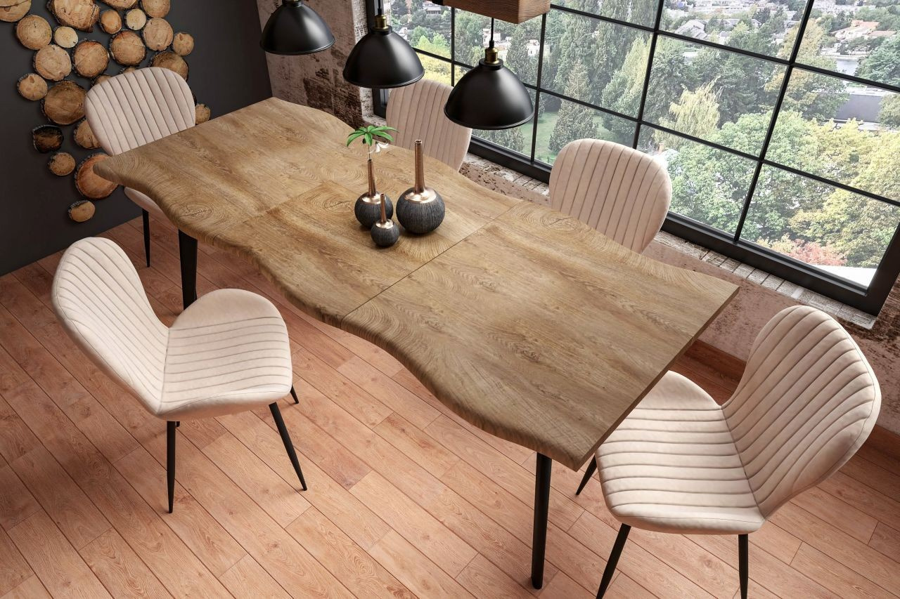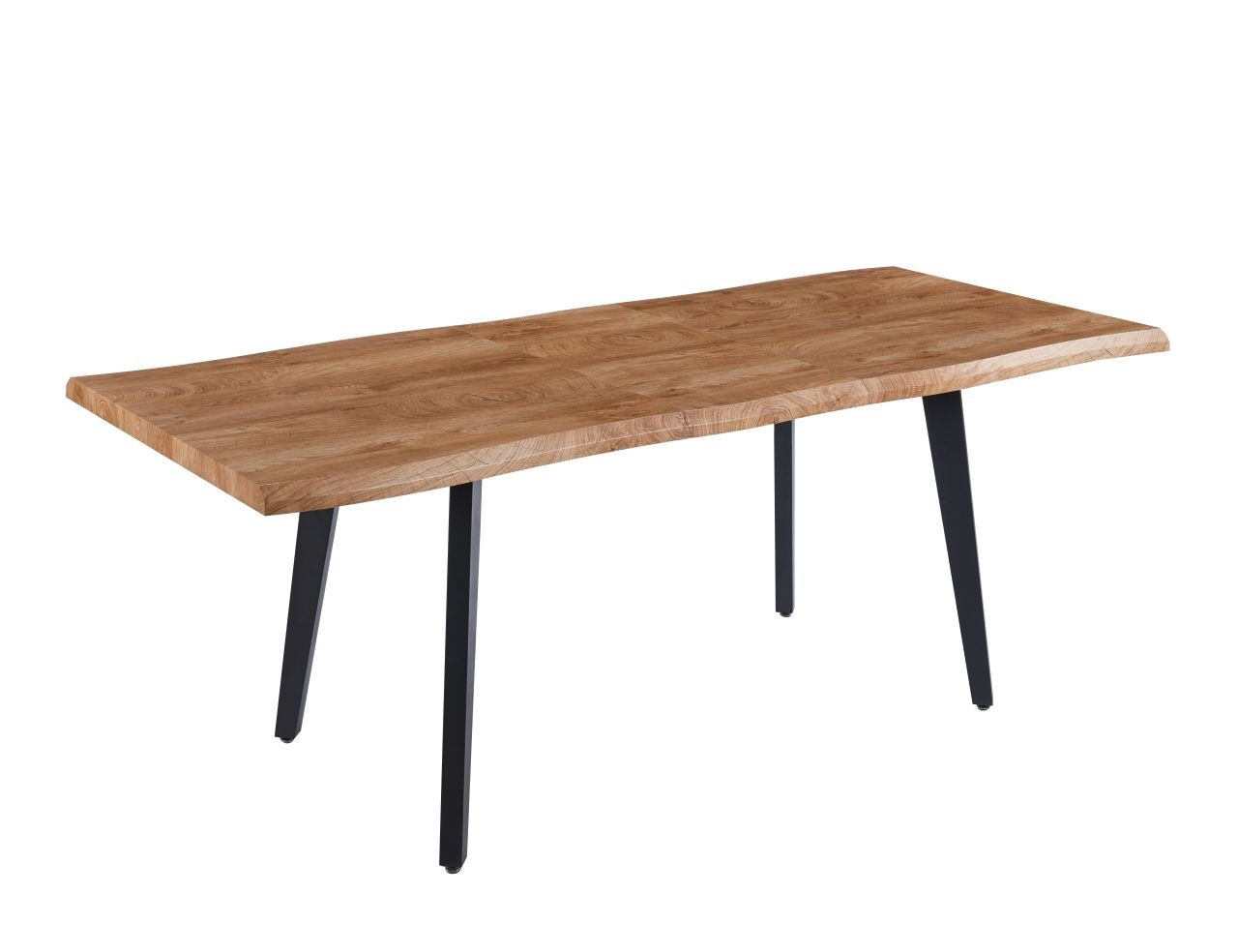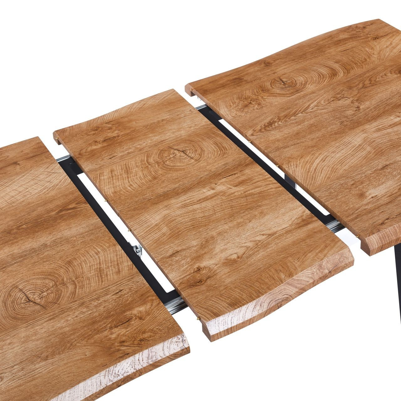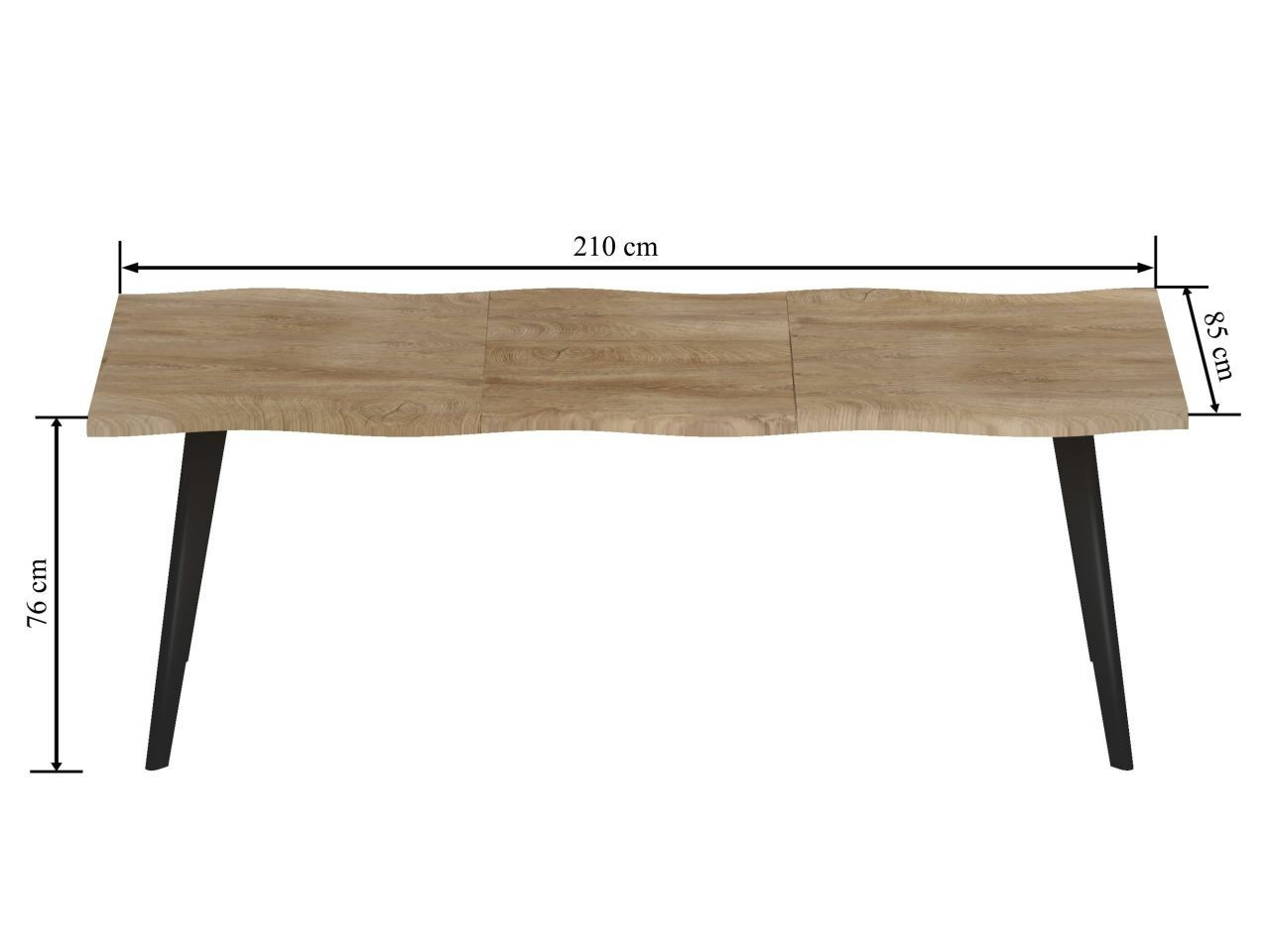Rozmery: - dĺžka: 150 cm (po rozložení 210 cm) - šírka: 85 cm - výška: 76 cm Materiál: - doska: MDF dyhovaná - nohy: oceľ lakovaná práškovou farbou Farba: - doska: prírodný dub - nohy: čierne