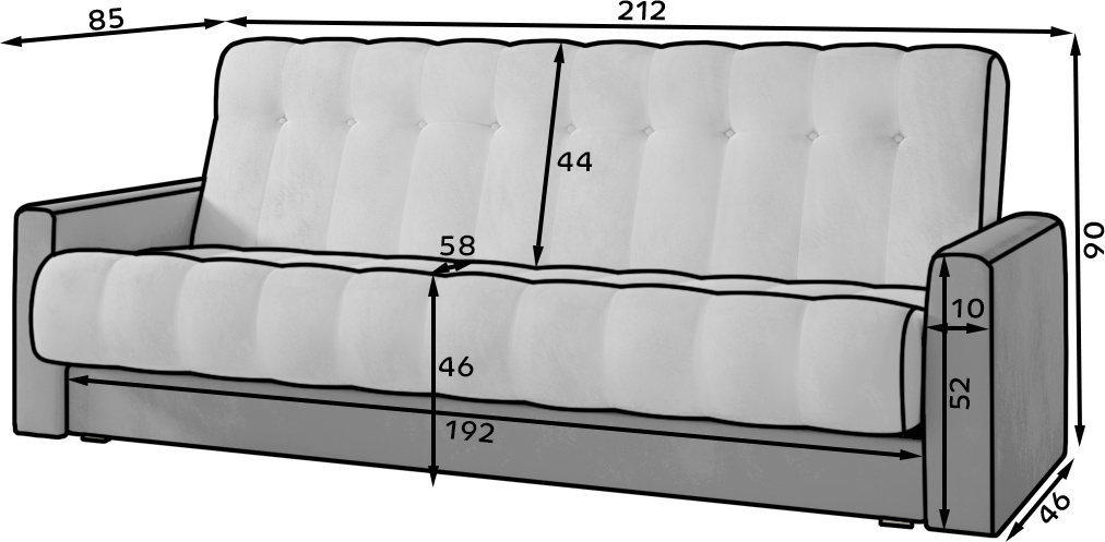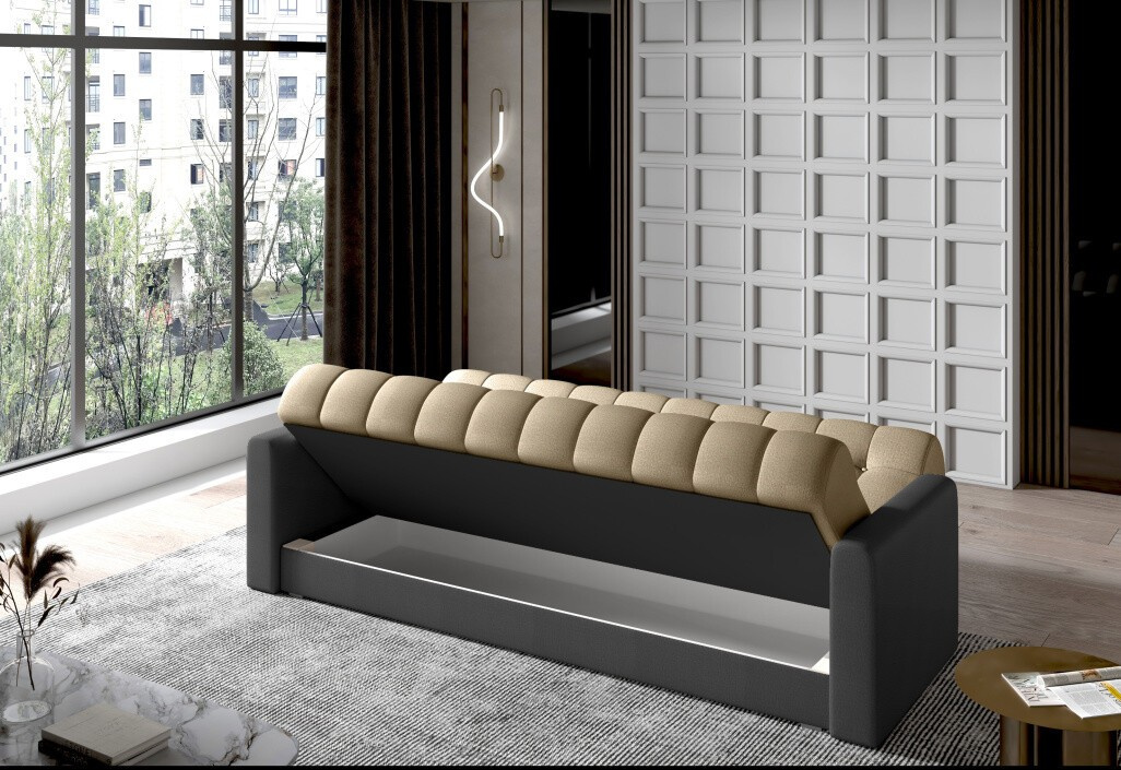 Garett je elegantná a veľmi štýlová pohovka, ktorá zaujme svojím spracovaním. Klasický tvar s elegantným prevedením dodáva pohovke jedinečný charakter. Garett je kus nábytku s rozmermi 210 x 85 x 90 cm - pre odpočinok počas dňa aj noci - vďaka spánkovej funkcii - posteľ s rozmermi 115 x 190 cm s navyše priestranným úložným priestorom na posteľnú bielizeň, ktorý je podporovaný otváracím mechanizmom Klik-klak. Vďaka použitiu bonelu a peny T25 je sedák pohovky mimoriadne flexibilný, mäkký a odolný voči akémukoľvek druhu deformácie. Jednoduchý tvar, elegantné prevedenie a bezpečná konštrukcia - to je to, čo predstavuje lounge nábytok Garett. Takáto pohovka určite splní všetky vaše očakávania.