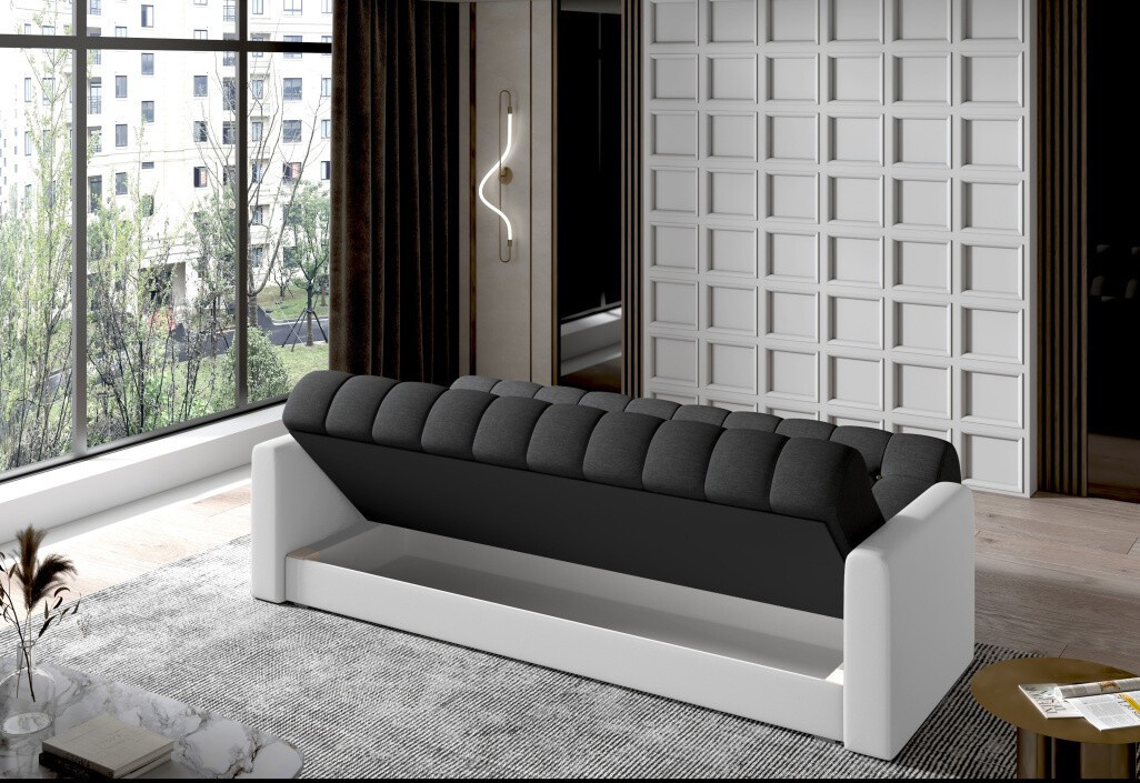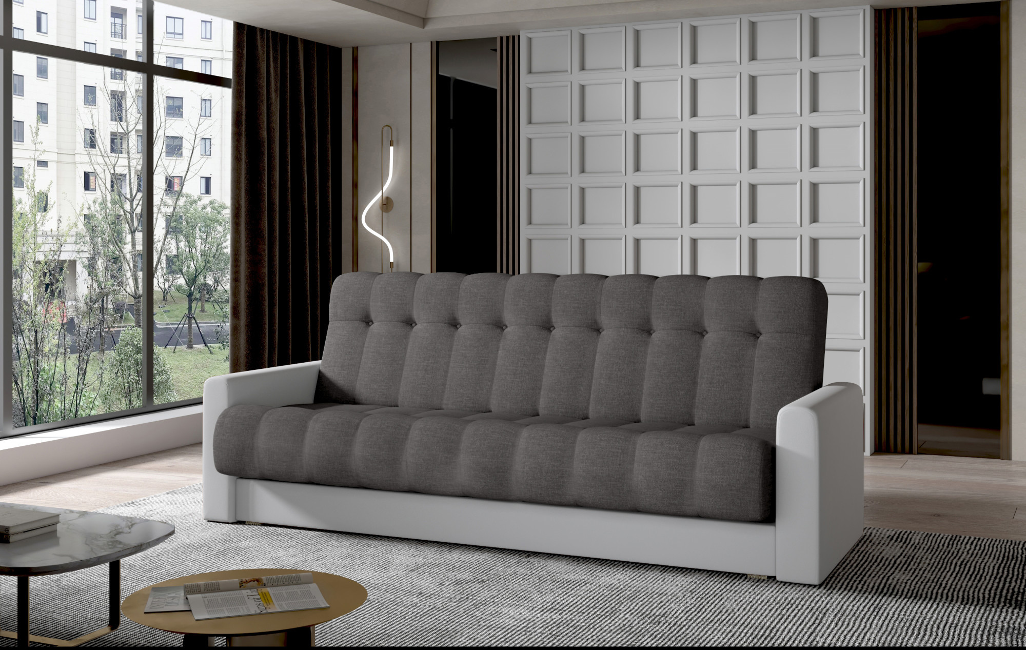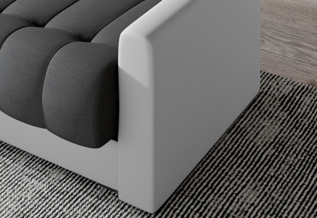 Garett je elegantná a veľmi štýlová pohovka, ktorá zaujme svojím spracovaním. Klasický tvar s elegantným prevedením dodáva pohovke jedinečný charakter. Garett je kus nábytku s rozmermi 210 x 85 x 90 cm - pre odpočinok počas dňa aj noci - vďaka spánkovej funkcii - posteľ s rozmermi 115 x 190 cm s navyše priestranným úložným priestorom na posteľnú bielizeň, ktorý je podporovaný otváracím mechanizmom Klik-klak. Vďaka použitiu bonelu a peny T25 je sedák pohovky mimoriadne flexibilný, mäkký a odolný voči akémukoľvek druhu deformácie. Jednoduchý tvar, elegantné prevedenie a bezpečná konštrukcia - to je to, čo predstavuje lounge nábytok Garett. Takáto pohovka určite splní všetky vaše očakávania.