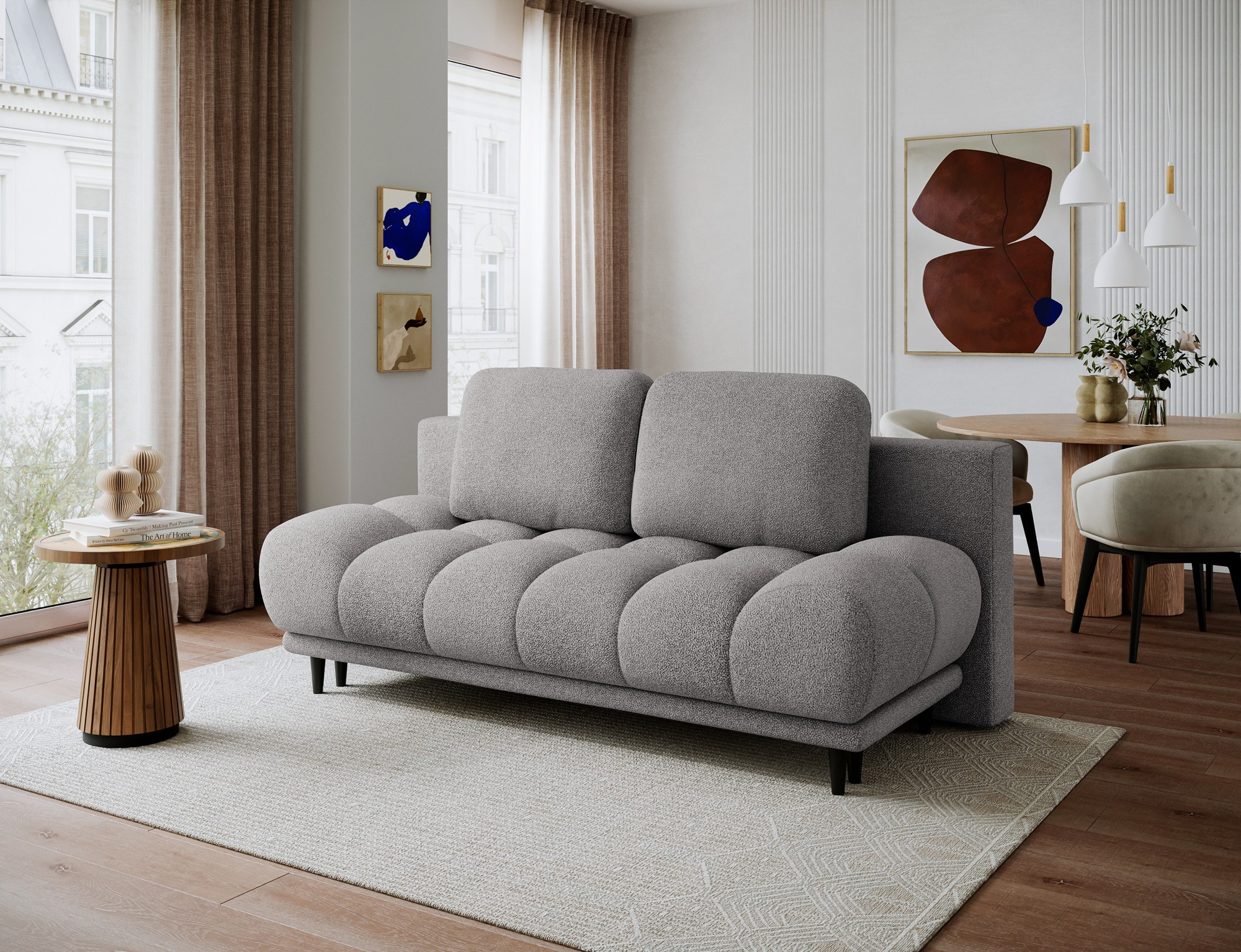 Pohovka je dodávaná s dvoma snímateľnými opornými vankúšmi, ktorých výplň tvorí polyuretánový granulát. Tieto vankúše nielenže zvyšujú komfort, ale tiež umožňujú jednoduchú údržbu a prispôsobenie vzhľadu pohovky podľa vašich predstáv.