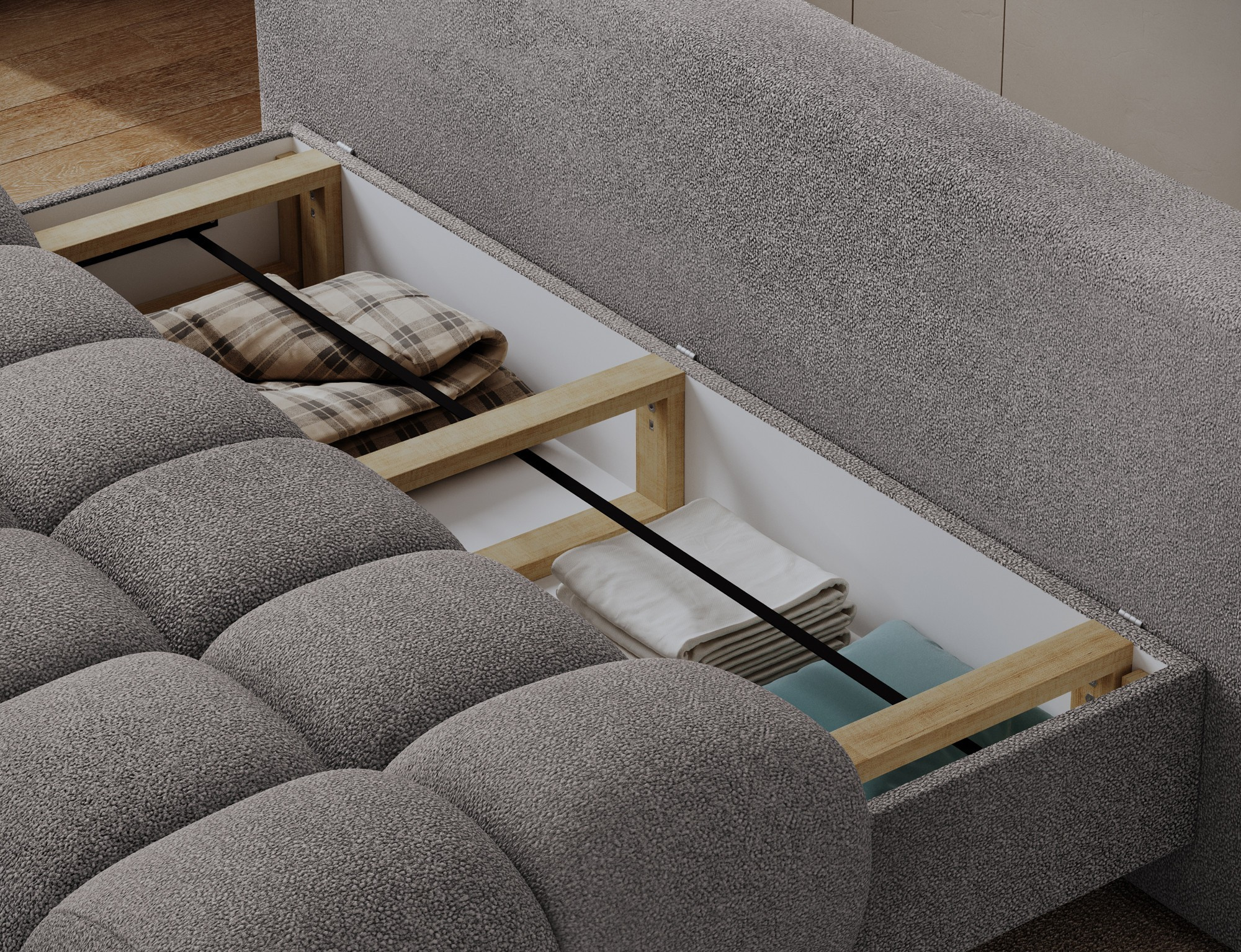 Praktický úložný priestor o rozmeroch 55x187x13 cm poskytuje dostatok miesta na uloženie posteľnej bielizne, vankúšov alebo sezónneho oblečenia. Už nikdy nebudete musieť riešiť, kam s prebytočnými vecami.