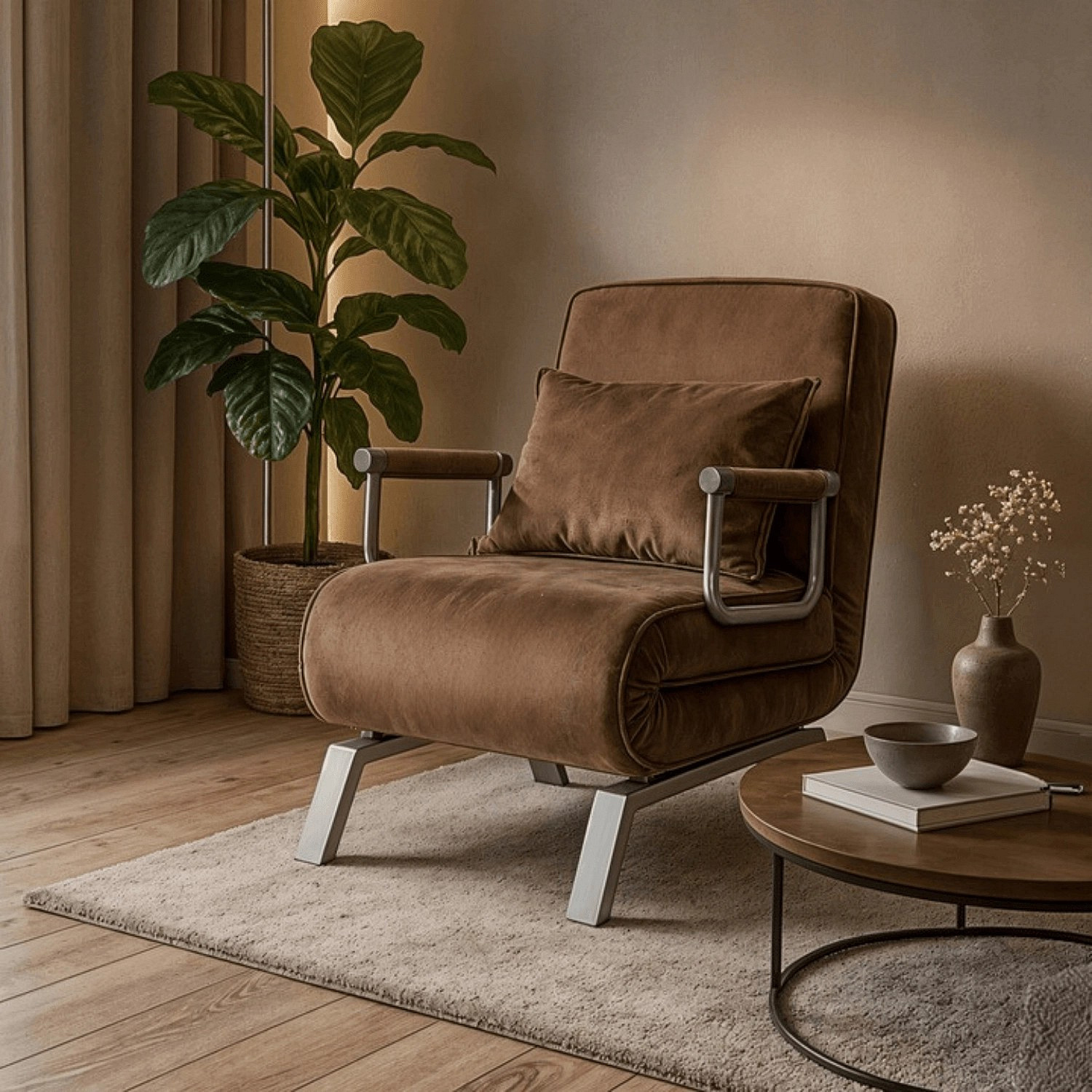 Rozkladacie Kreslo BART Hnedé Zamatové