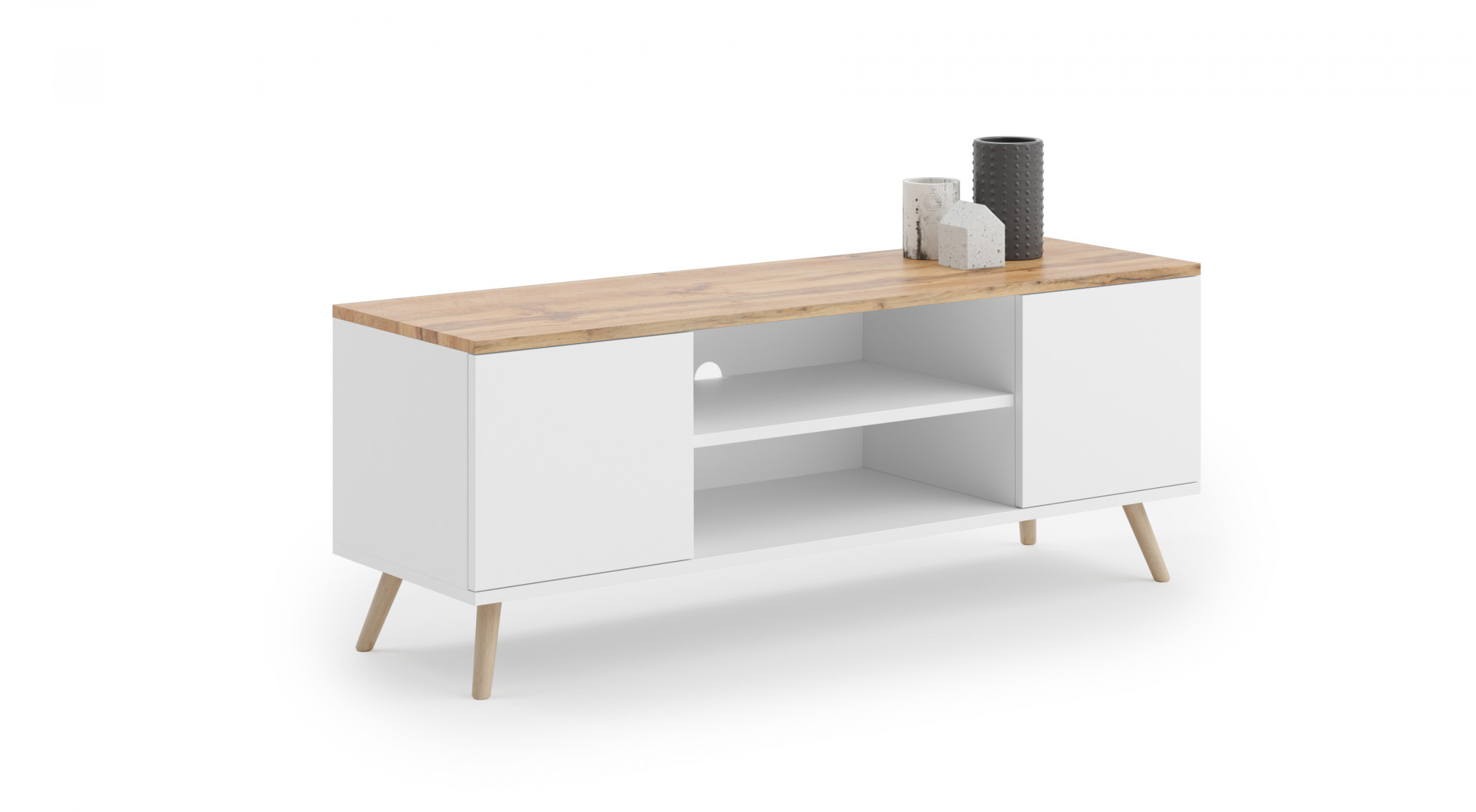 Skrinku RTV PETRA charakterizuje jednoduchosť a moderný dizajn. Vo výklenku a dvoch priestranných skrinkách môžeš ukladať vybavenie alebo knihy. PETRA sa hodí ako do klasických, tak do moderných interiérov.
