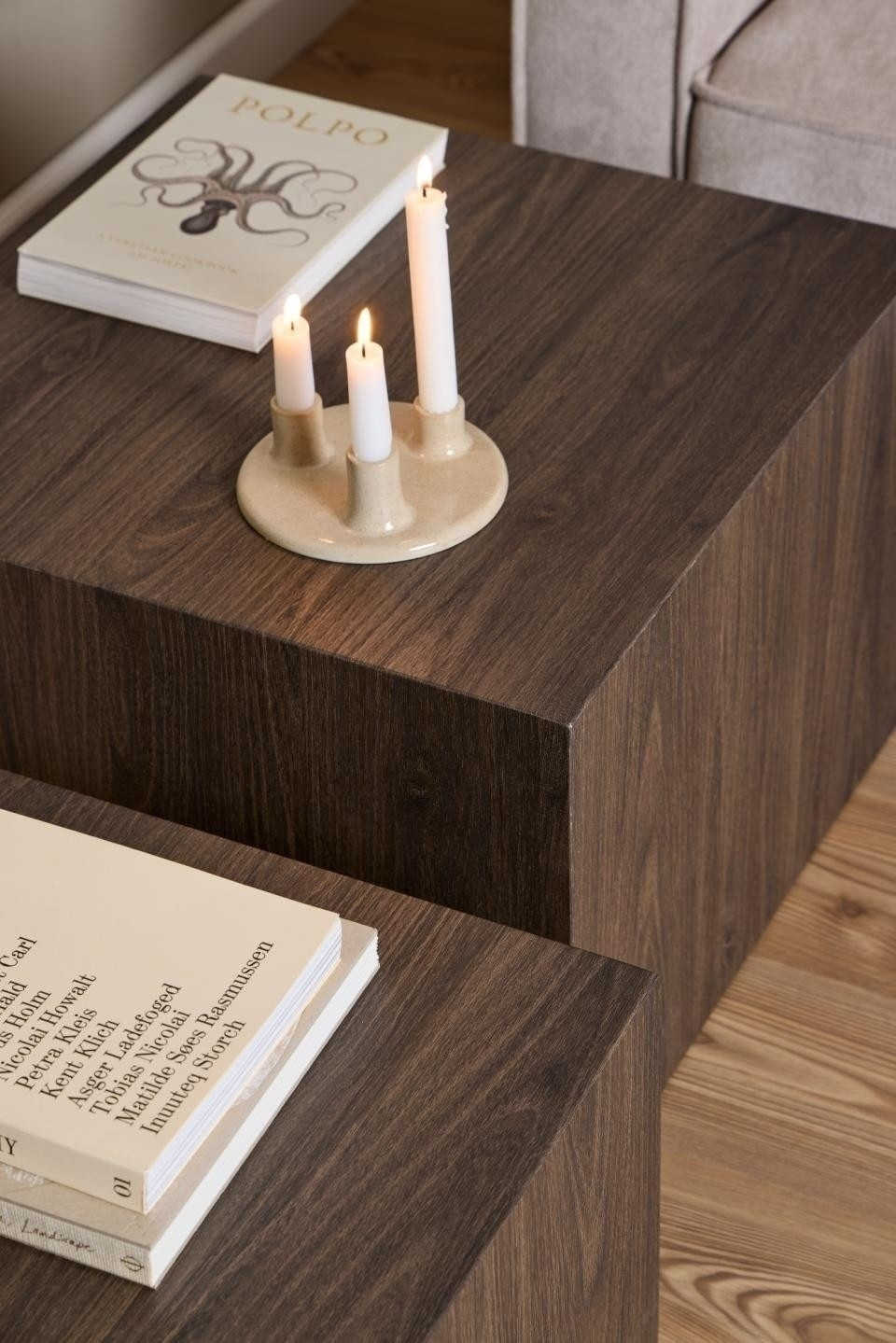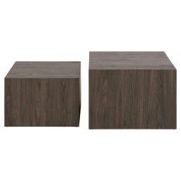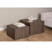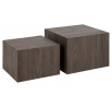Sada dvoch stolíkov v tvare kociek (58x58x40;50x50x33). Sú pokryté laminátom s dekorom dymového jasanu. Stolíky budú skvele vyzerať v elegantnej obývačke. Môžu tiež slúžiť ako kvetinové záhony. Zospodu majú malé plastové nožičky, ktoré chránia podlahu pred poškodením. Počet kartónov: 1 Rozmery kartónov: 65x46x65cm Hmotnosť kartónov: 23,5kg
