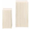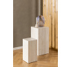 Sada dvoch pomocných stolíkov v tvare kvádrov. Vyrobené z MDF dosiek pokrytých laminátom imitujúcim béžový travertín. Do obývačky, predsiene alebo spálne. Môžu slúžiť napr. ako kvetináče. Zospodu zabezpečené plastovými nožičkami. Rozmery stolíkov: 35x35x70;25x25x50 Počet kartónov: 1 Rozmery kartónov: 42,5x42,5x76cm Hmotnosť kartónov: 18,5kg
