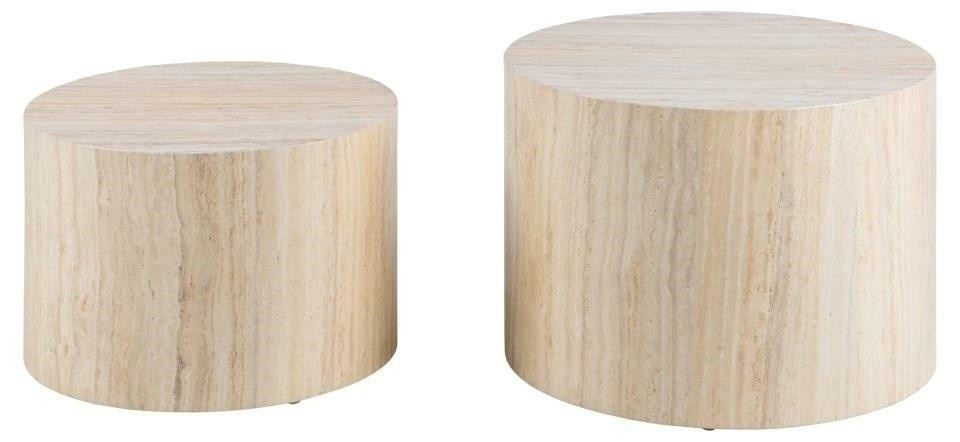 Sada 2 stolíkov Dice okrúhle travertín