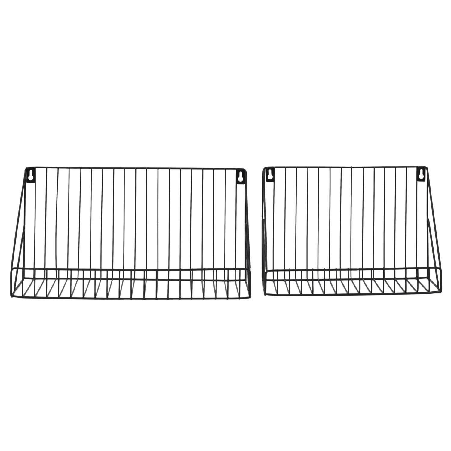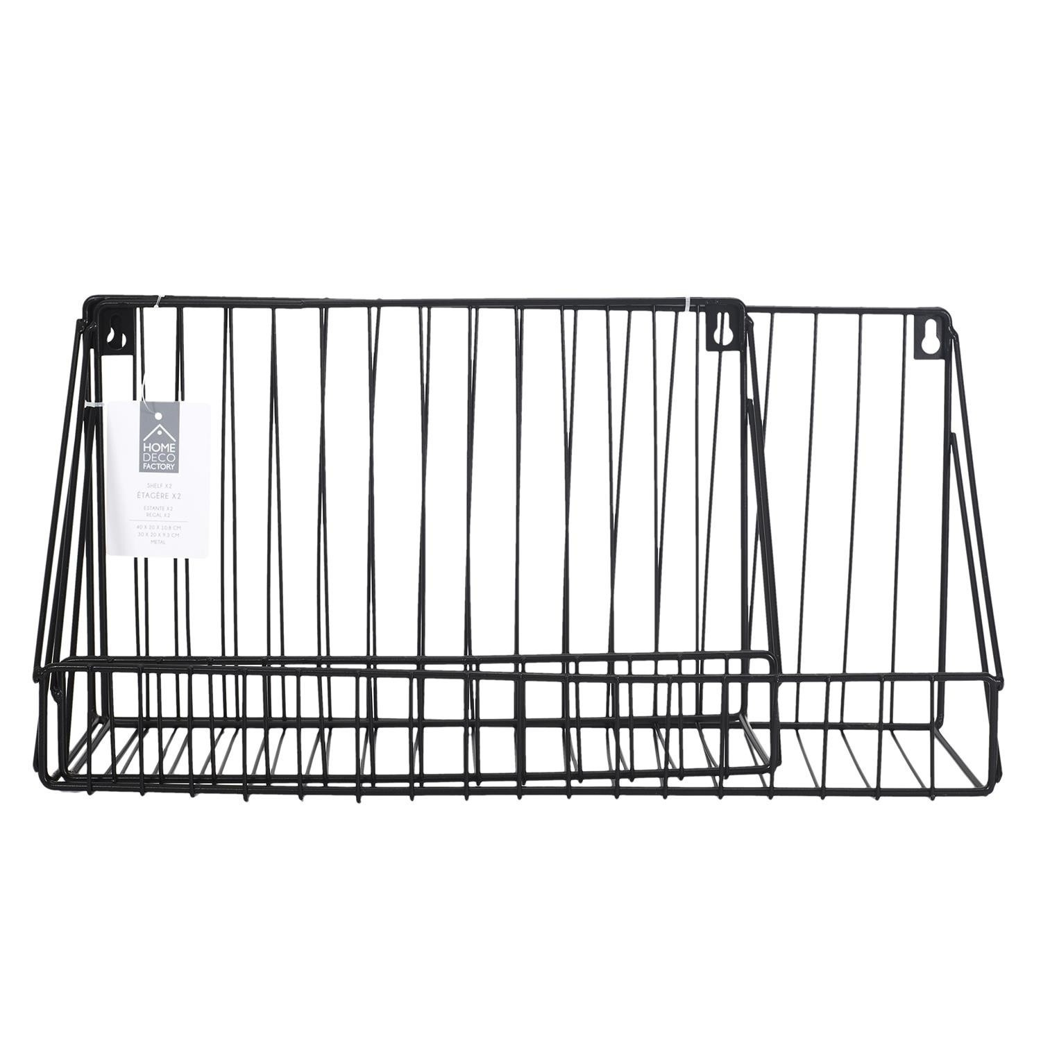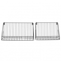 Sada dvoch kovových nástenných políc je doplnok v loftovom štýle, ktorý doplní prázdnu stenu. Čierne, kovové police sú určené na zavesenie na stenu. Vďaka tomu, že boli práškovo natreté na čierno, sú odolné voči častému používaniu, napr. ako polica na korenie.