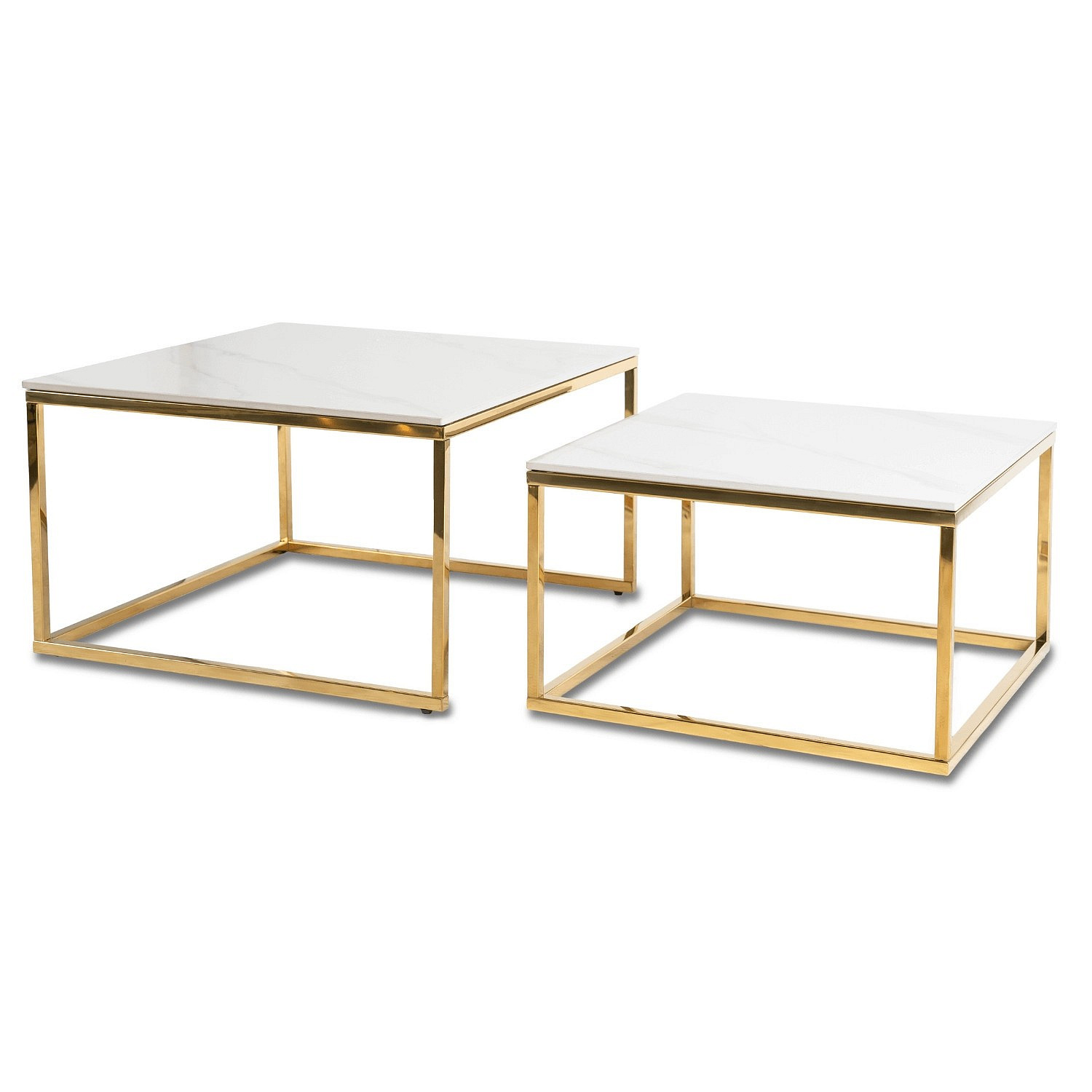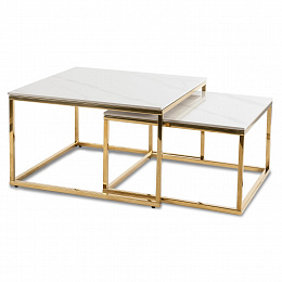 Sada keramických stolíkov TENOR Biely Mramor/ Zlatý