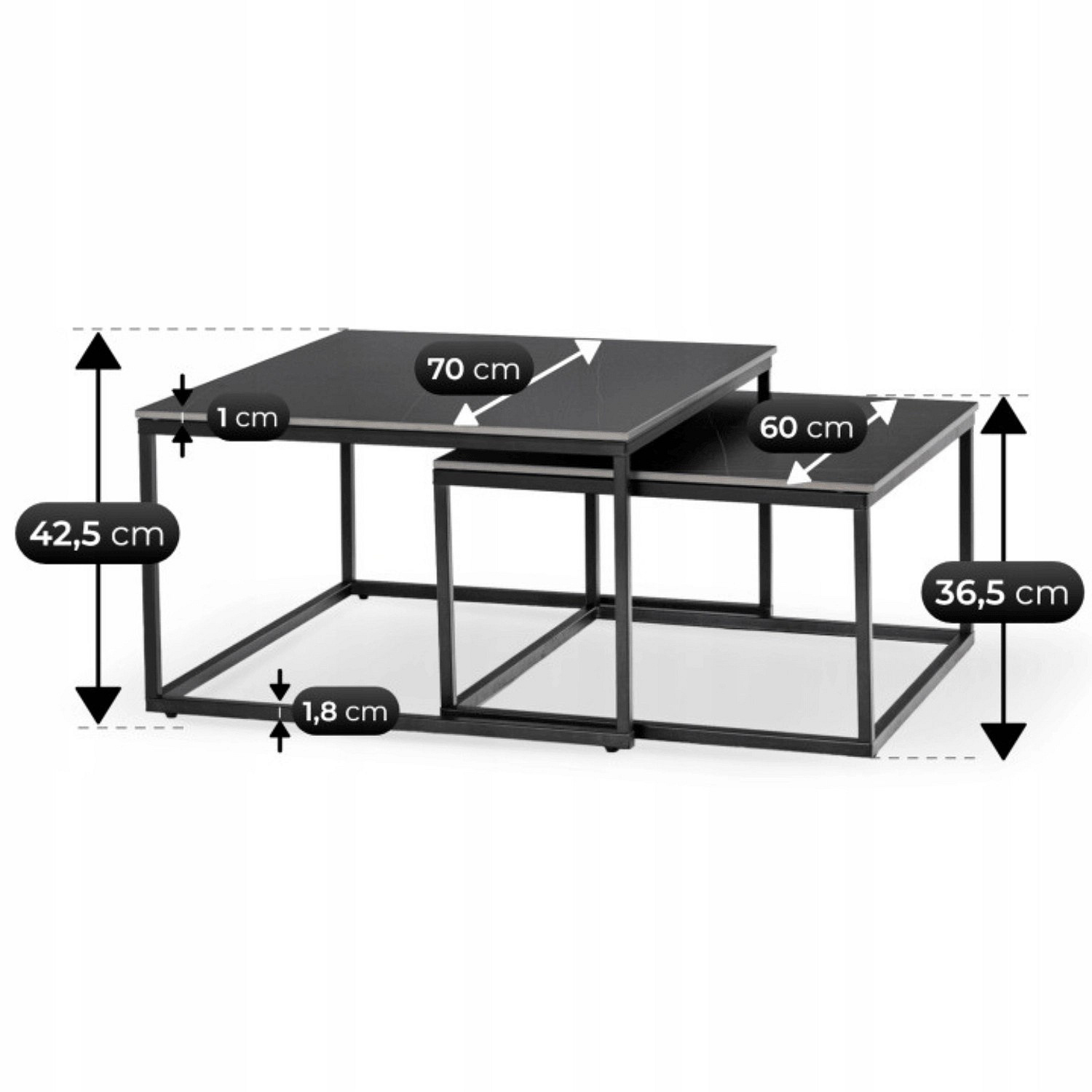Sada keramických stolíkov TENOR Čierny mramor/Čierny