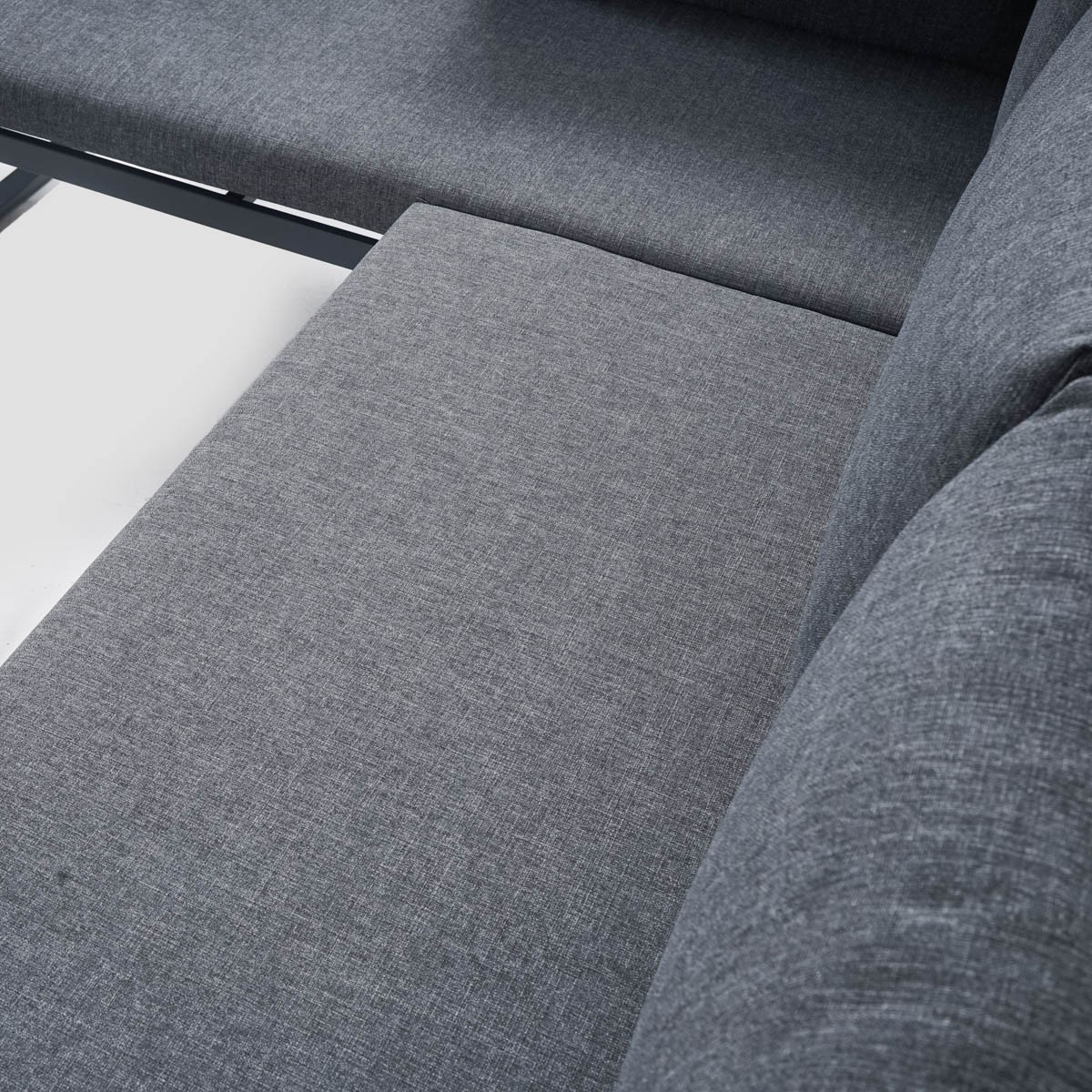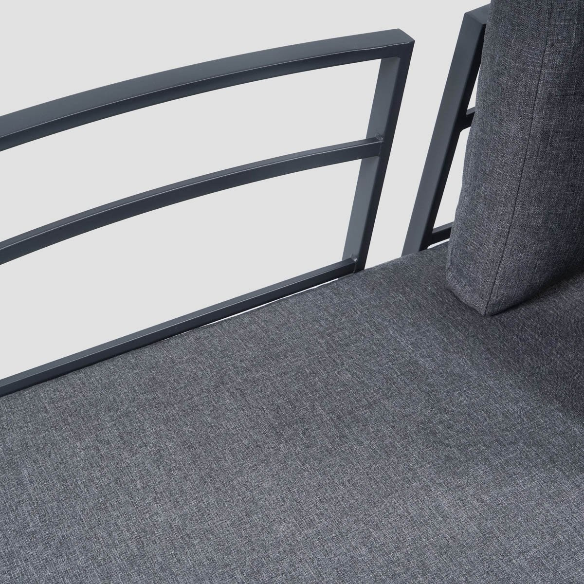 Rám nábytku je vyrobený z oceľových profilov s práškovým nástrekom a priečky sú vyrobené z odolného plastu (PP), ktorý je odolný voči vlhkosti a ľahko sa čistí. Odolný polyesterový materiál vankúšov má hustú väzbu, je odolný proti poškodeniu a zároveň príjemný na dotyk.