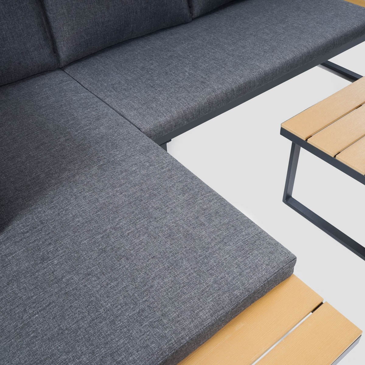 Moderná rohová pohovka a zodpovedajúci konferenčný stolík je duo, ktoré premení vašu záhradu alebo verandu.