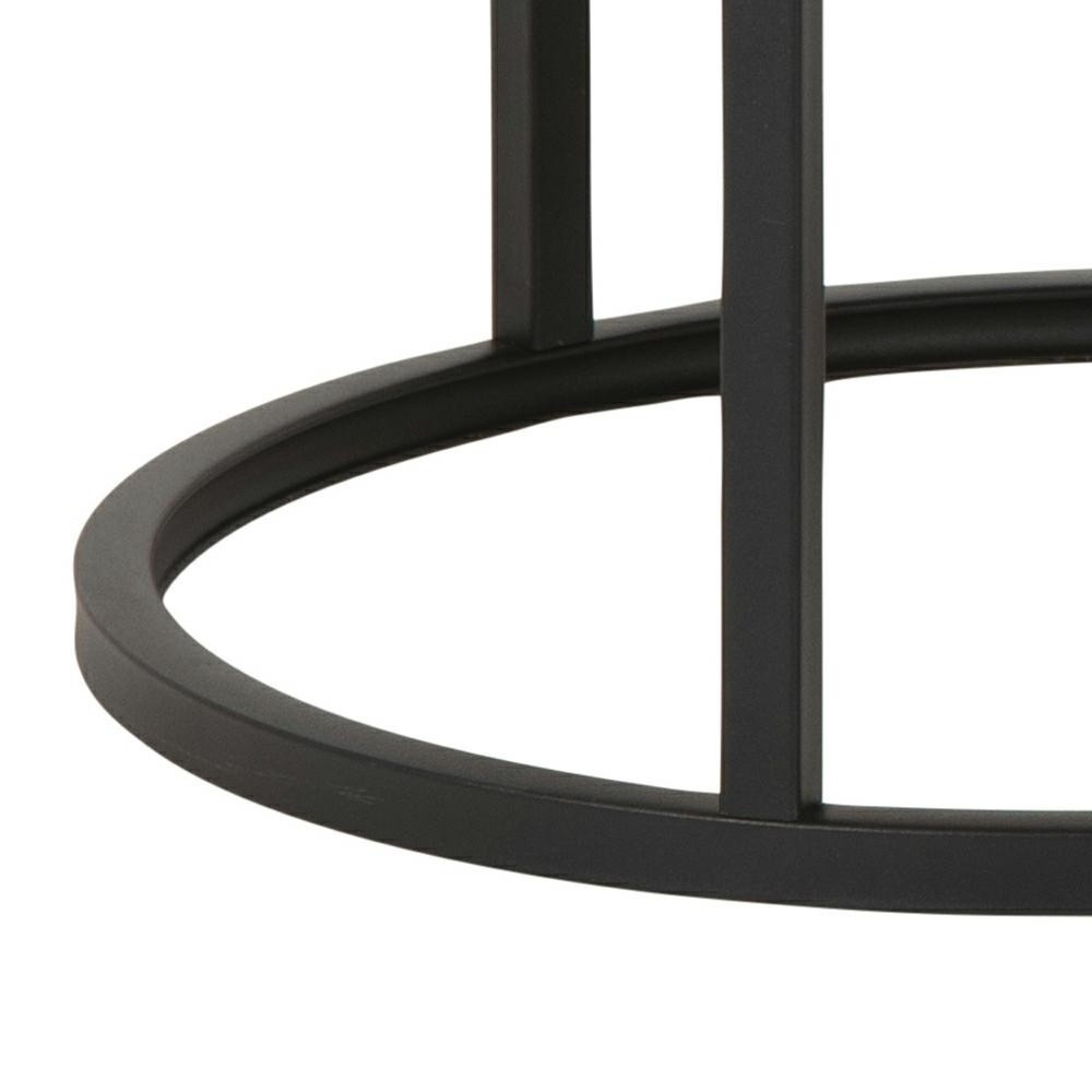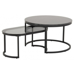 Moderná sada dvoch konferenčných stolíkov, ktorých nespornou výhodou je možnosť schovať menší pod väčší. Okrúhle dosky stolíkov boli vyrobené z dymového skla a MDF s dyhou imitujúcou kameň. Priehľadná a lesklá sklenená doska zaujímavo ladí s čiernou, kovovou základňou nižšieho stolíka. Vyšší stolík, rovnako s kovovou základňou, bol ozdobený doskou, ktorá imituje mramor. Okrúhle stolíky majú odolnú a stabilnú základňu vyrobenú z kovu s práškovým nástrekom. Sada stolíkov Spiro je ideálnymi konferenčnými stolíkmi do obývacej izby alebo čakárne. Stolíky v modernom štýle sa hodia do každého interiéru a budú jeho ozdobou. Sada obsahuje okrúhly väčší stolík a menší oválny stolík. Hmotnosť stolíkov: 15 kg Rozmery kartónu: 81 x 14 x 75 cm