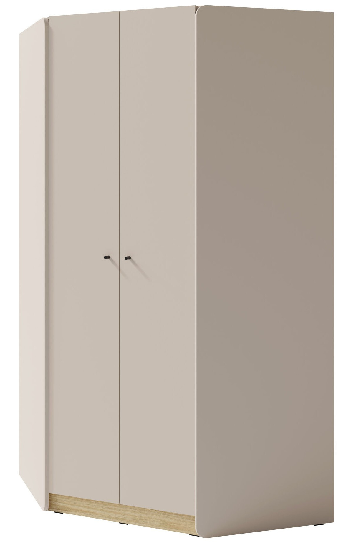 Rohová šatníková skriňa ALESSIO AE 2, pieskovo-béžová/olejovaný dub