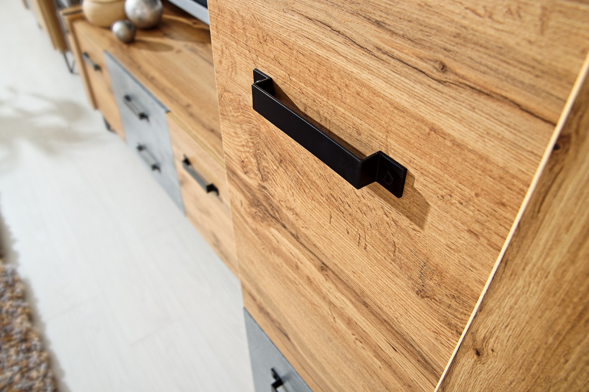 Nábytok LOFTER je moderný nábytok navrhnutý v industriálnom štýle. Výrobca venoval pozornosť detailom a kvalite nábytku. Na výrobu tohto systému použil laminované nábytkové dosky s ABS hranami, ktoré majú zvýšenú odolnosť proti poškriabaniu, teplu a vlhkosti.