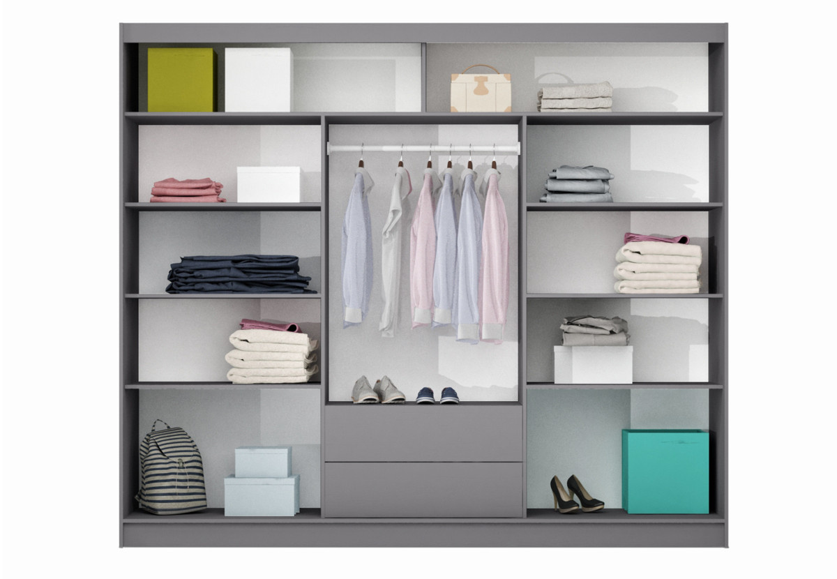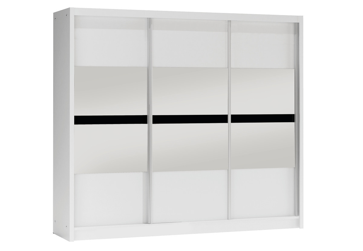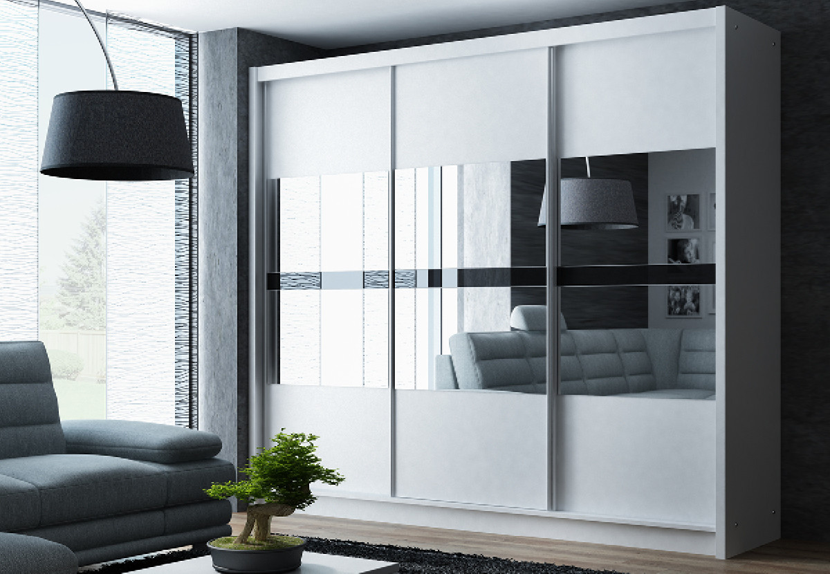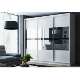 Šatníková skriňa BATUMI 250, biela/grafitové zrkadlo/čierne sklo