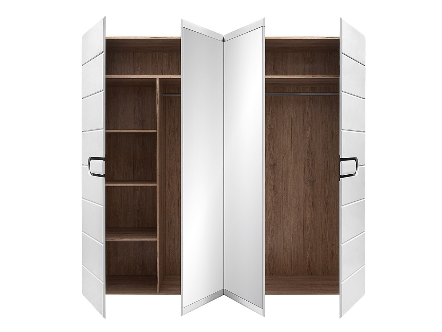 Priestranná šatníková skriňa Byron SZF2D2L/21/22 vo farebnej kombinácii dub san remo svetlý a biely vysoký lesk.