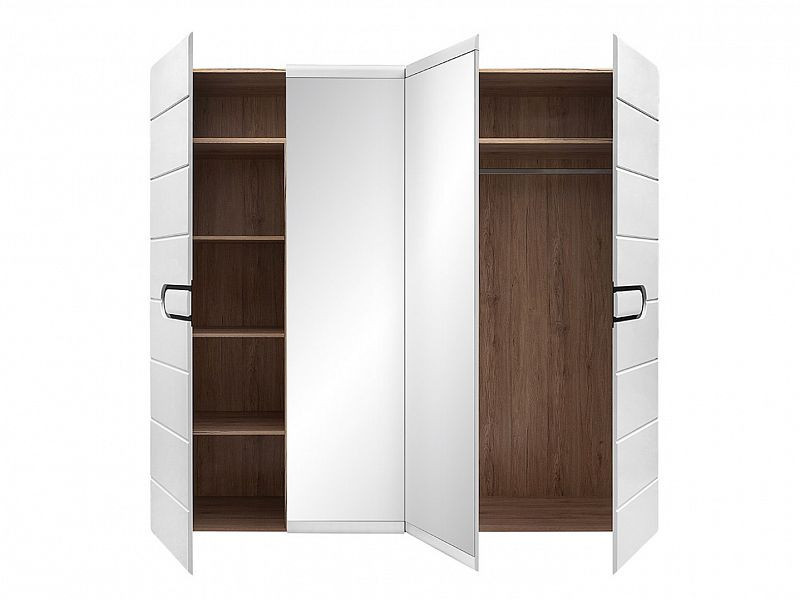 Šatníková skriňa obsahuje police na odkladanie šiat a tyče na zavesenie ramienok.