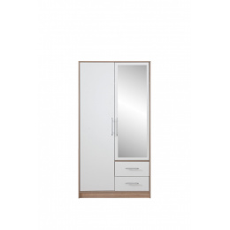 Šatníková skriňa SMART SRL3 so zrkadlom, dub sonoma + biely lux
