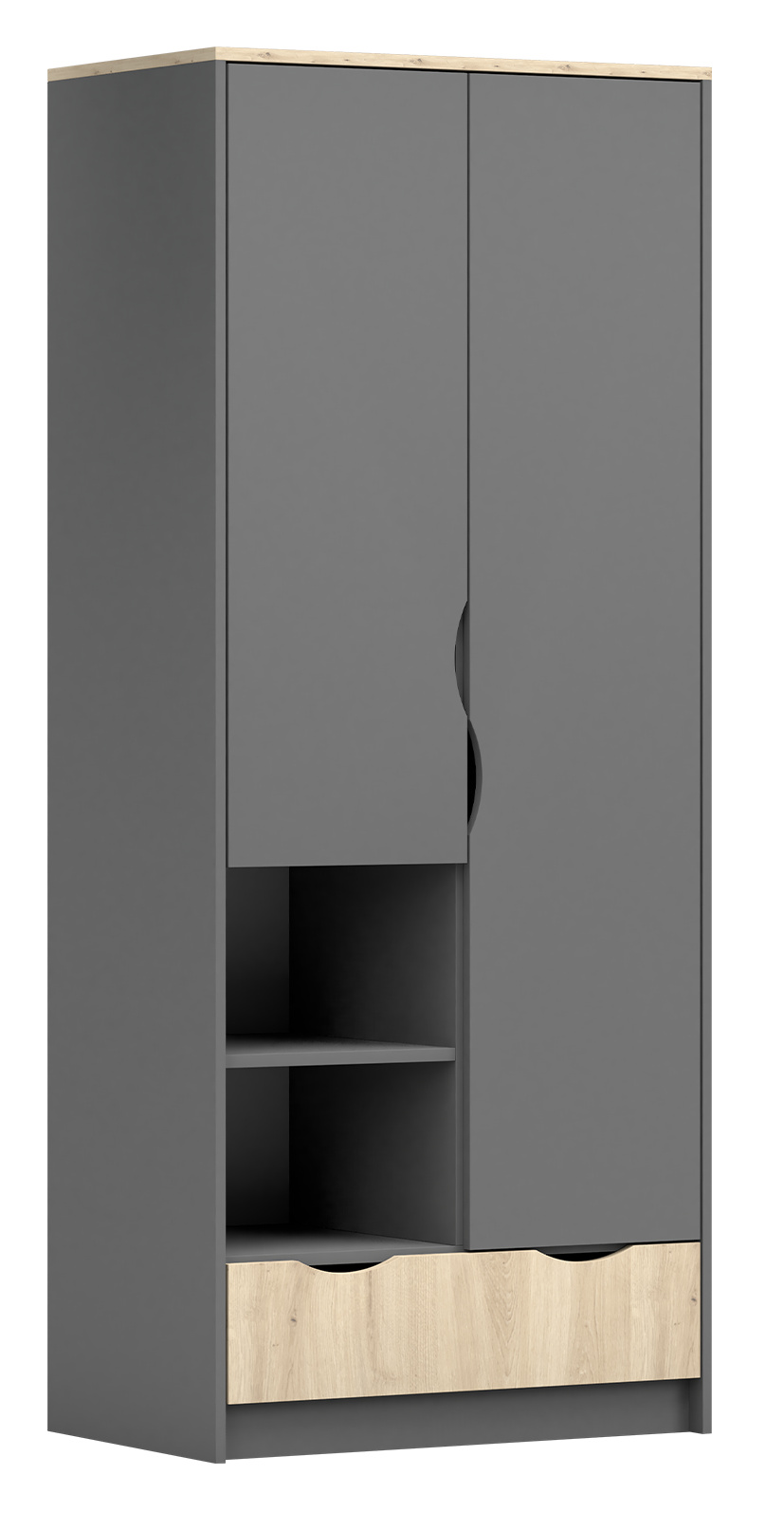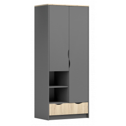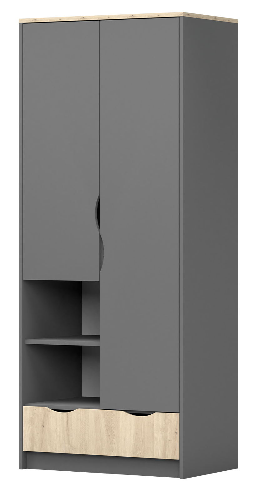 Šatní skriňa 2D - JOY II 06, Sivá/Dub Artisan