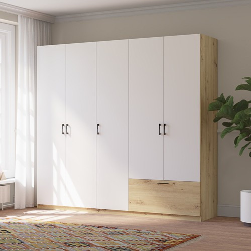 Šatní skriňa ALTA 5D1S, Dub Artisan/Biela