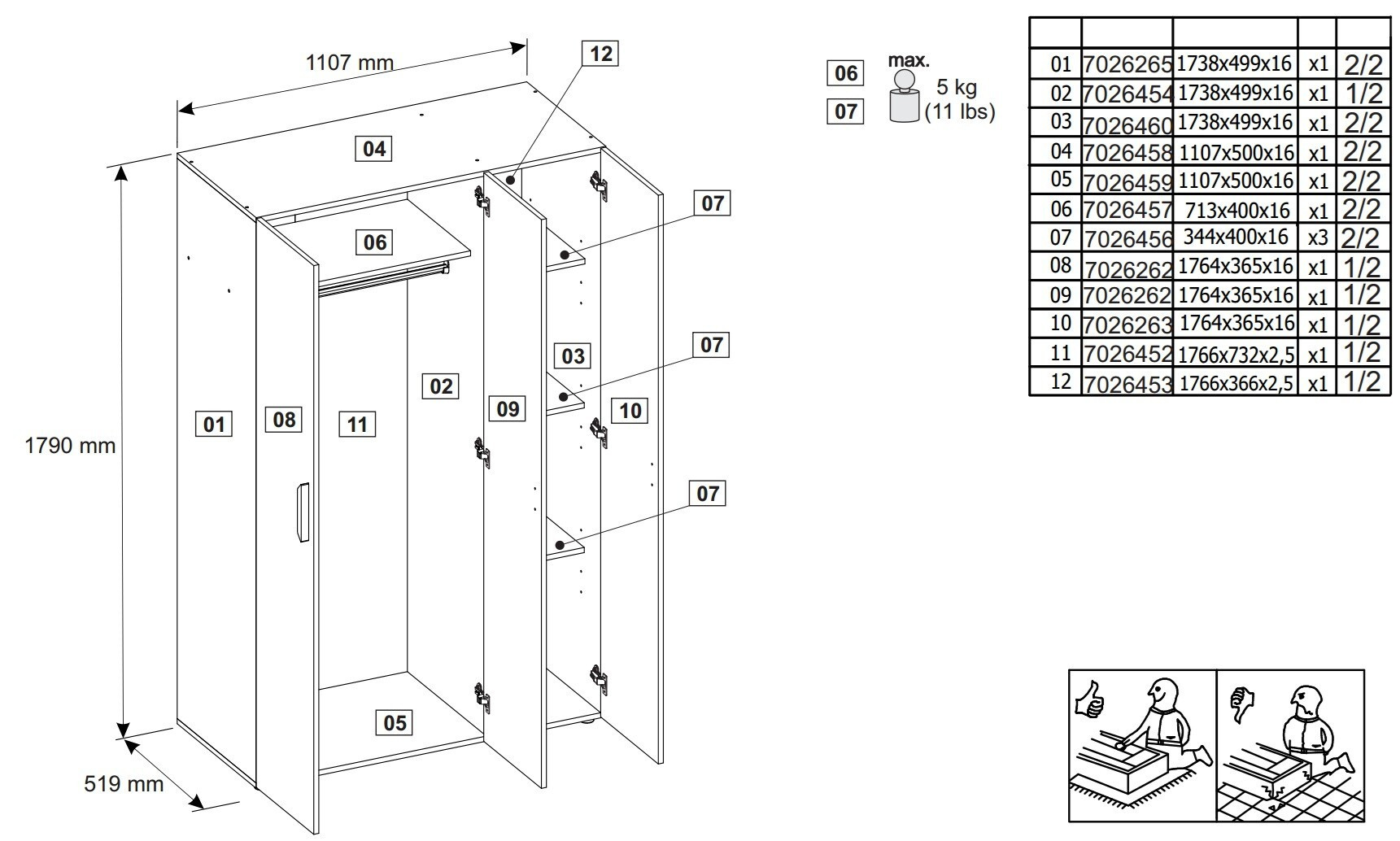 Šatní skriňa BASIC 3D je dodávaná s jednoduchým návodom na montáž, takže ju ľahko a rýchlo zostavíte.