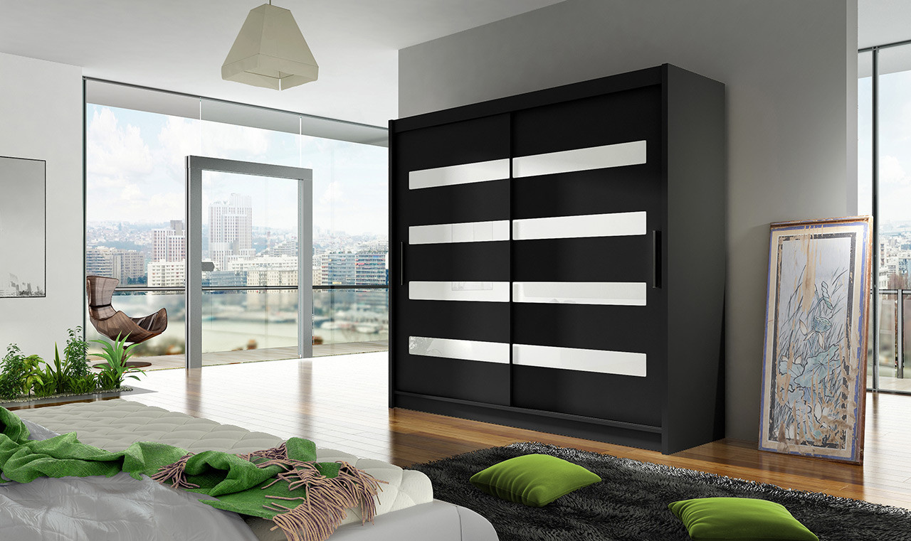 Šatní skriňa BERGER XI, Čierna/Biela