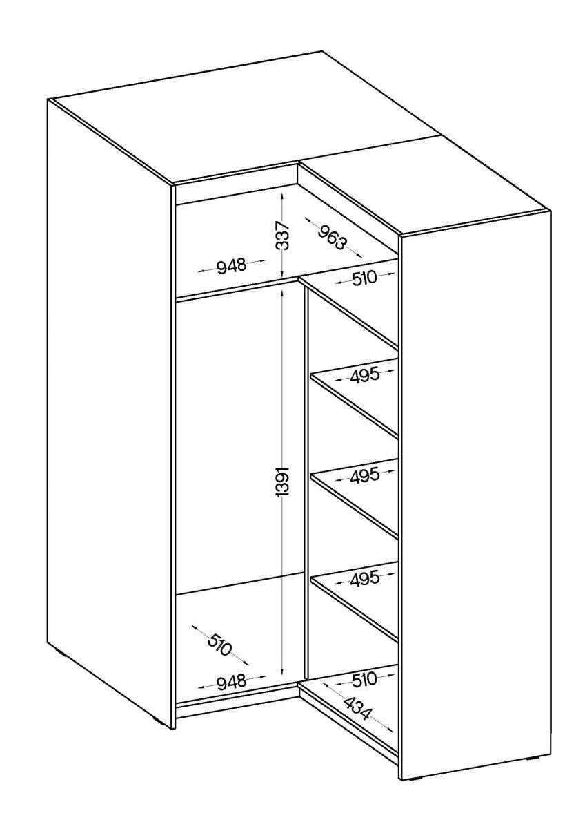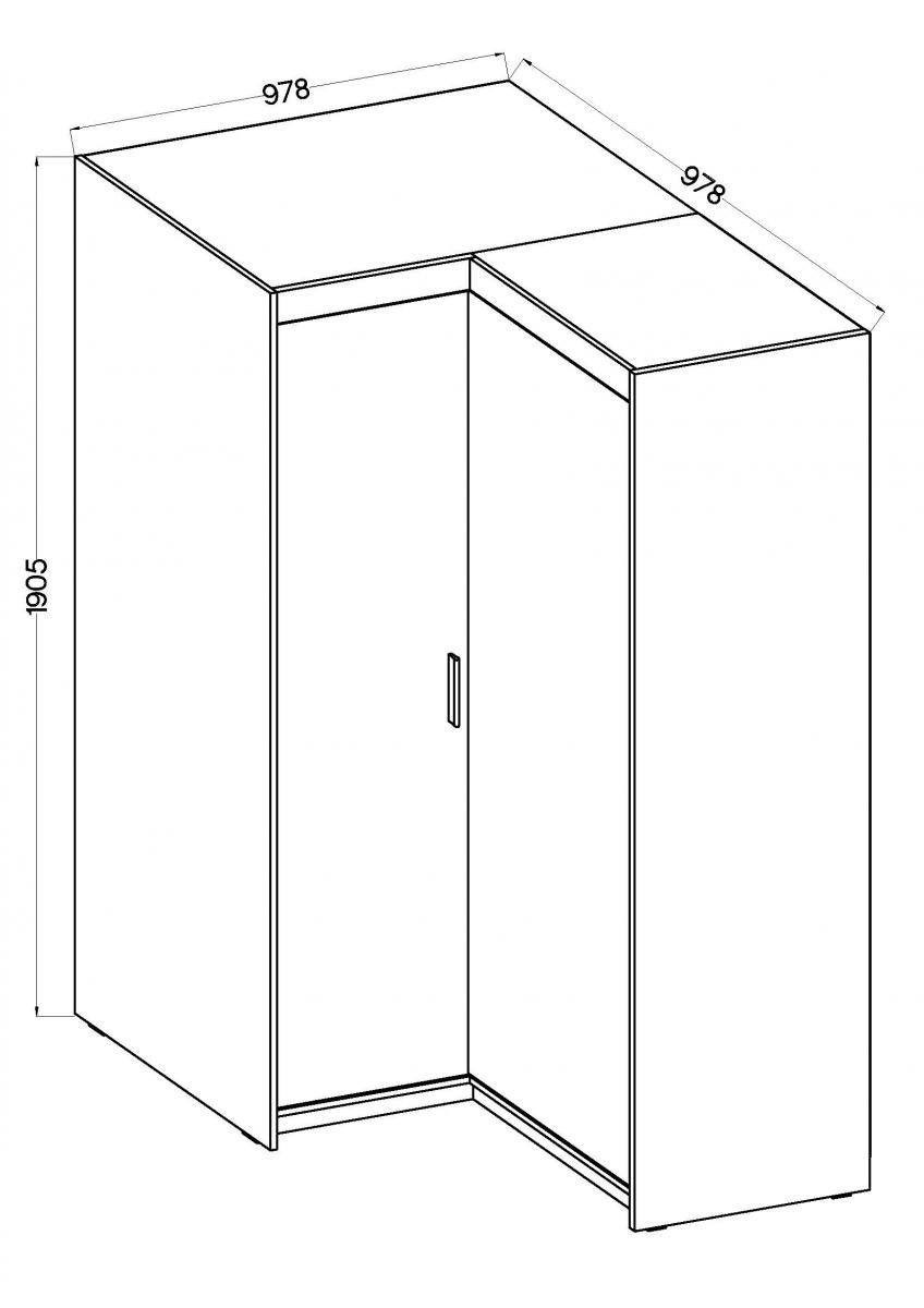Rohová šatní skriňa Enja je vyrobená z kvalitného lamina hr.15 mm, ktoré je odolné a ľahké na údržbu. Vnútorné usporiadanie skrine je praktické a poskytuje dostatok úložného priestoru. Svoje uplatnenie nájde v spálni, predsieni aj v detskej izbe. K skrini je možné dokúpiť nadstavec. Skriňa je dodávaná v demonte a ponúkame ju v niekoľkých farebných prevedeniach. Súčasťou balenia je montážny plánik vrátane všetkých potrebných spojovacích materiálov.
