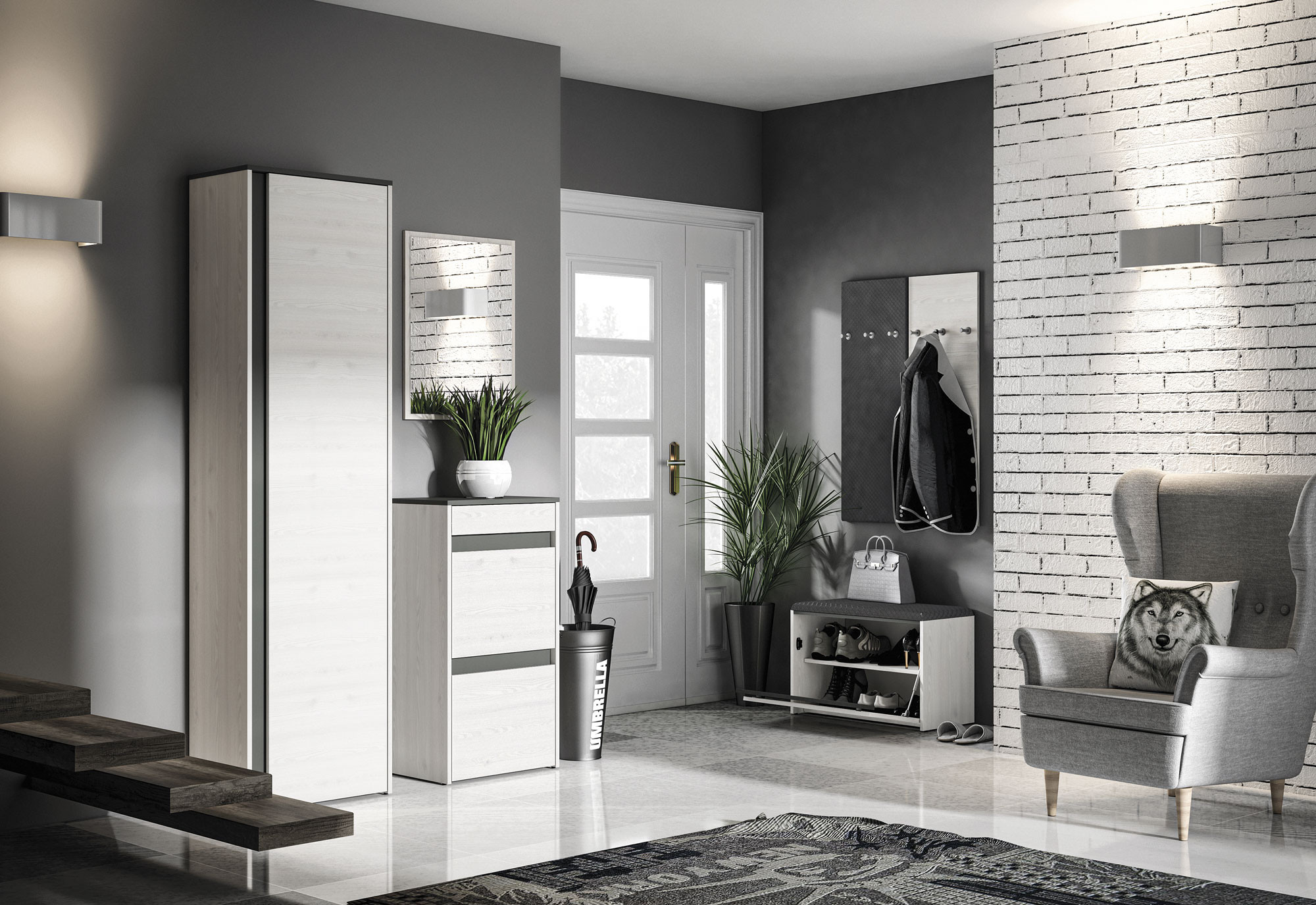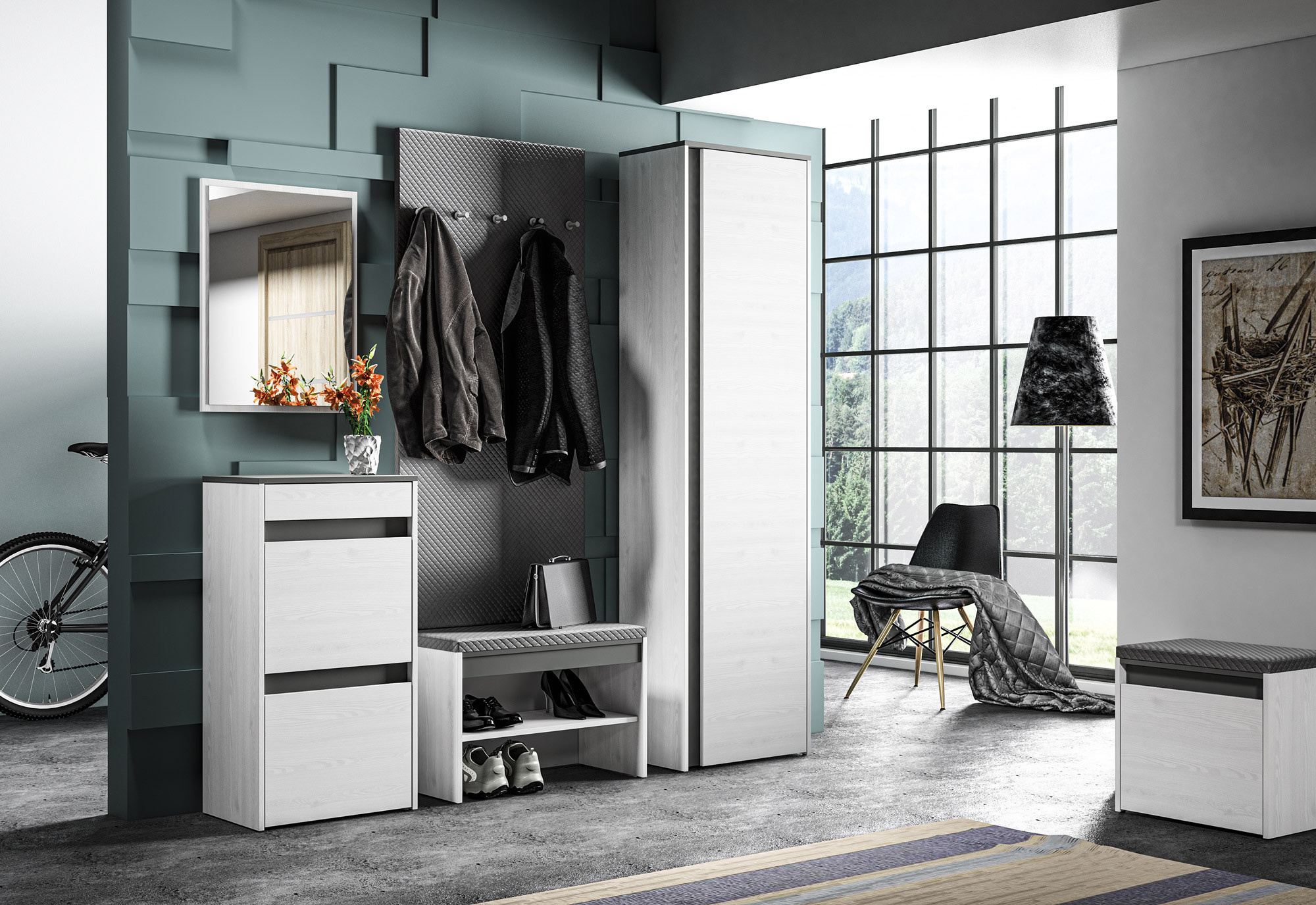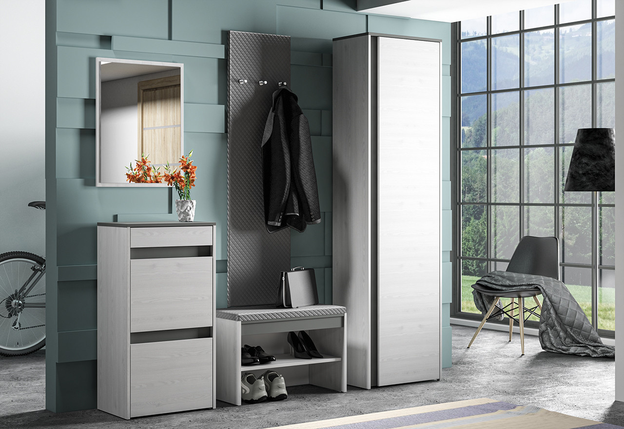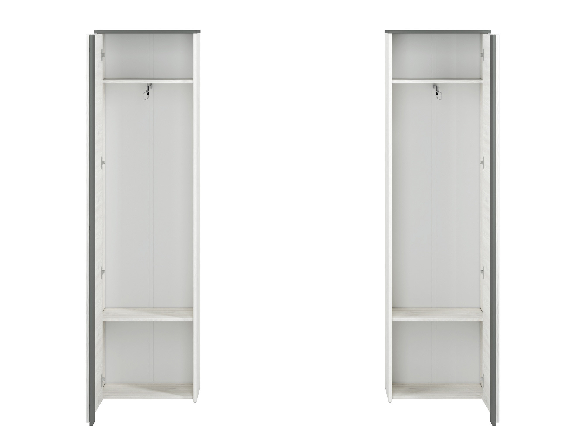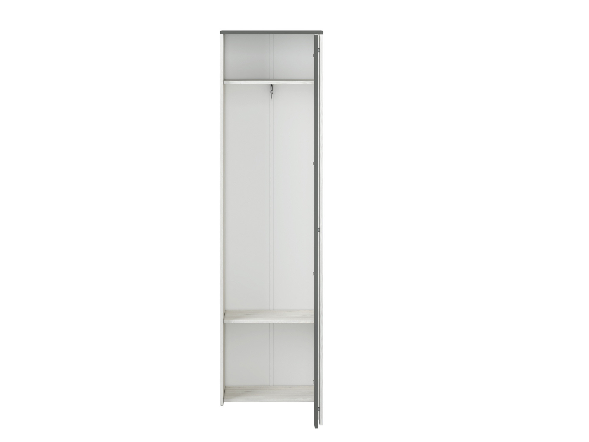 Šatníková skriňa HYGA 06 má jednoduché a moderné čelá a korpus vo farbe snehovej borovice, ktorá dokonale kontrastuje s antracitovými prvkami. Vďaka kapacite šatníka už nebude uskladnenie oblečenia, obuvi a doplnkov problém.