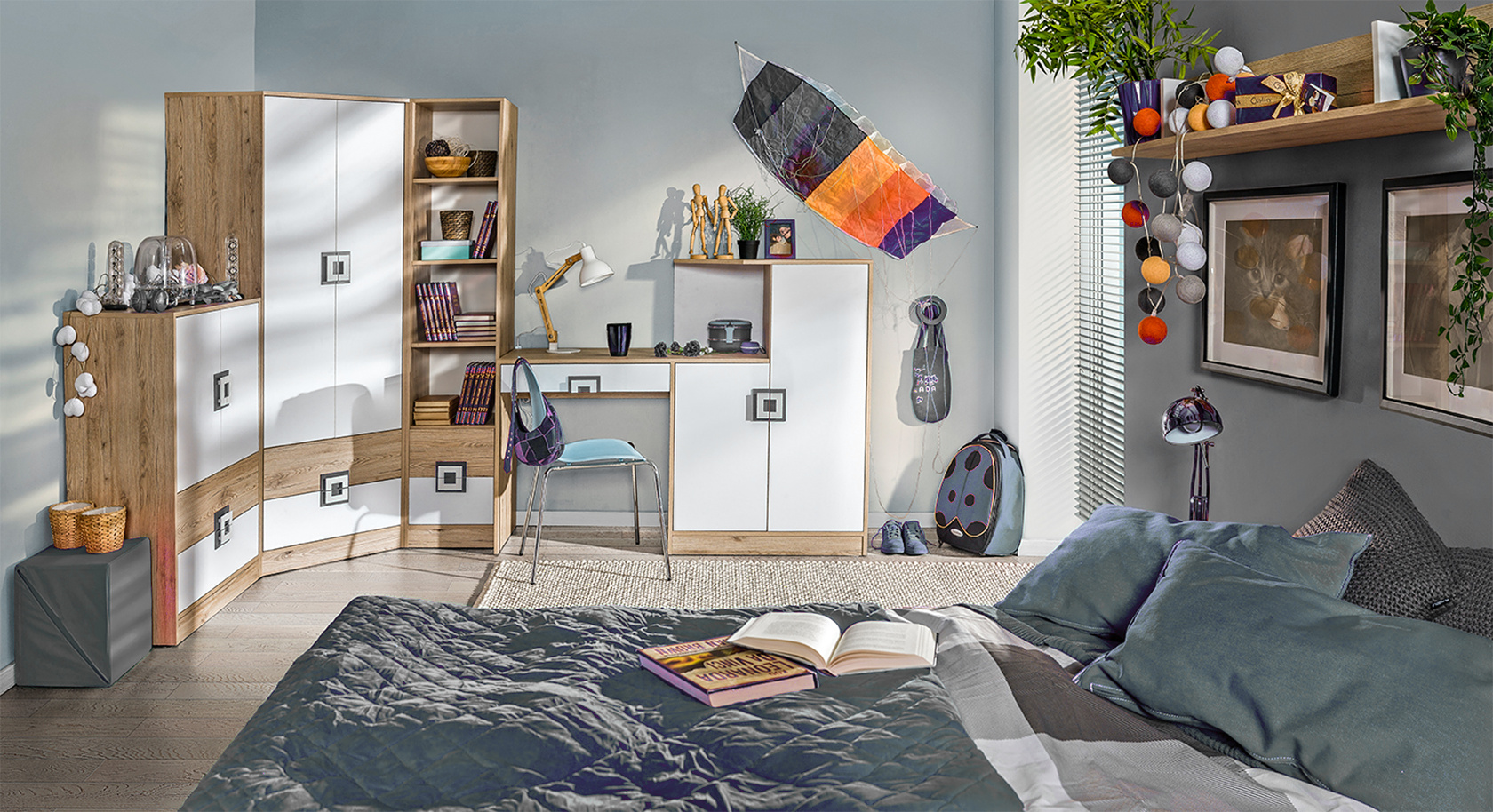 Nábytok GULIVER je modernou inováciou v oblasti nábytku pre deti a mládež a je k dispozícii v bielej farbe korpusu s 5 farebnými variantmi dvierok a 6 možnými farbami úchytiek na výber. Všetky komponenty si môžete zakúpiť samostatne a vytvoriť si tak vlastné plnohodnotné využitie priestoru miestnosti.