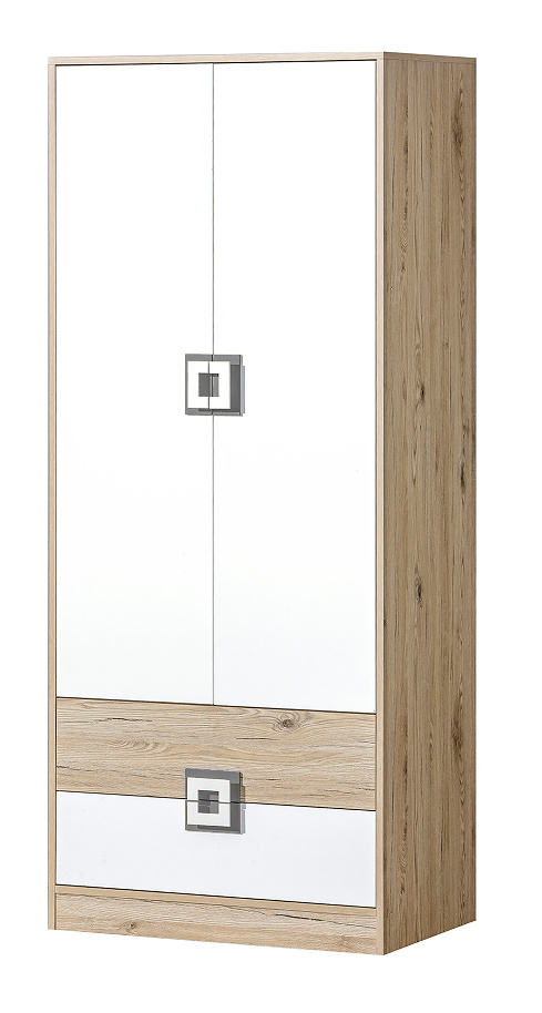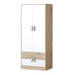 Šatní skriňa NICO 01, Svetlý Dub/Biela/Sivá
