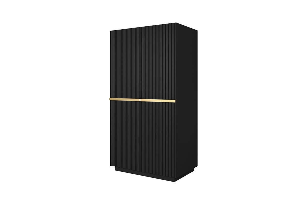 Dvojdverová skriňa Nicole s ryhovaným čelom a kovovými úchytkami 100 cm - čierny mat / zlaté úchytky, Šírka: 100, Výška: 207, Hĺbka: 62, Výška nožičiek: , Hĺbka dosky: , Montáž: