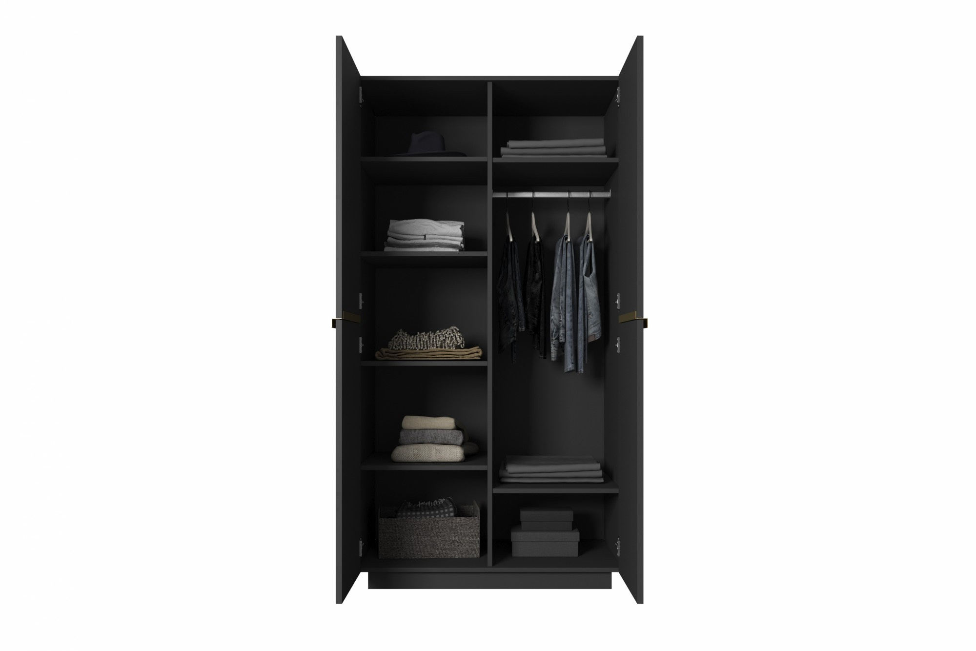 Šatní skriňa Nicole, čierny mat / zlaté úchyty