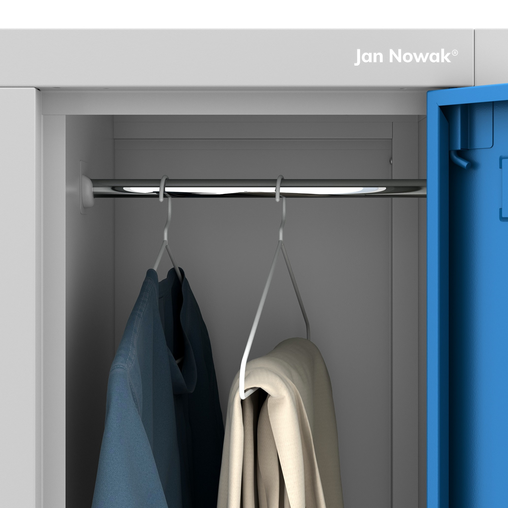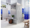 Každá skrinka je vybavená tyčou na zavesenie oblečenia a priestorom pre ďalšie vešiaky. To umožňuje efektívne usporiadanie a uloženie rôznych typov odevov a osobných vecí.