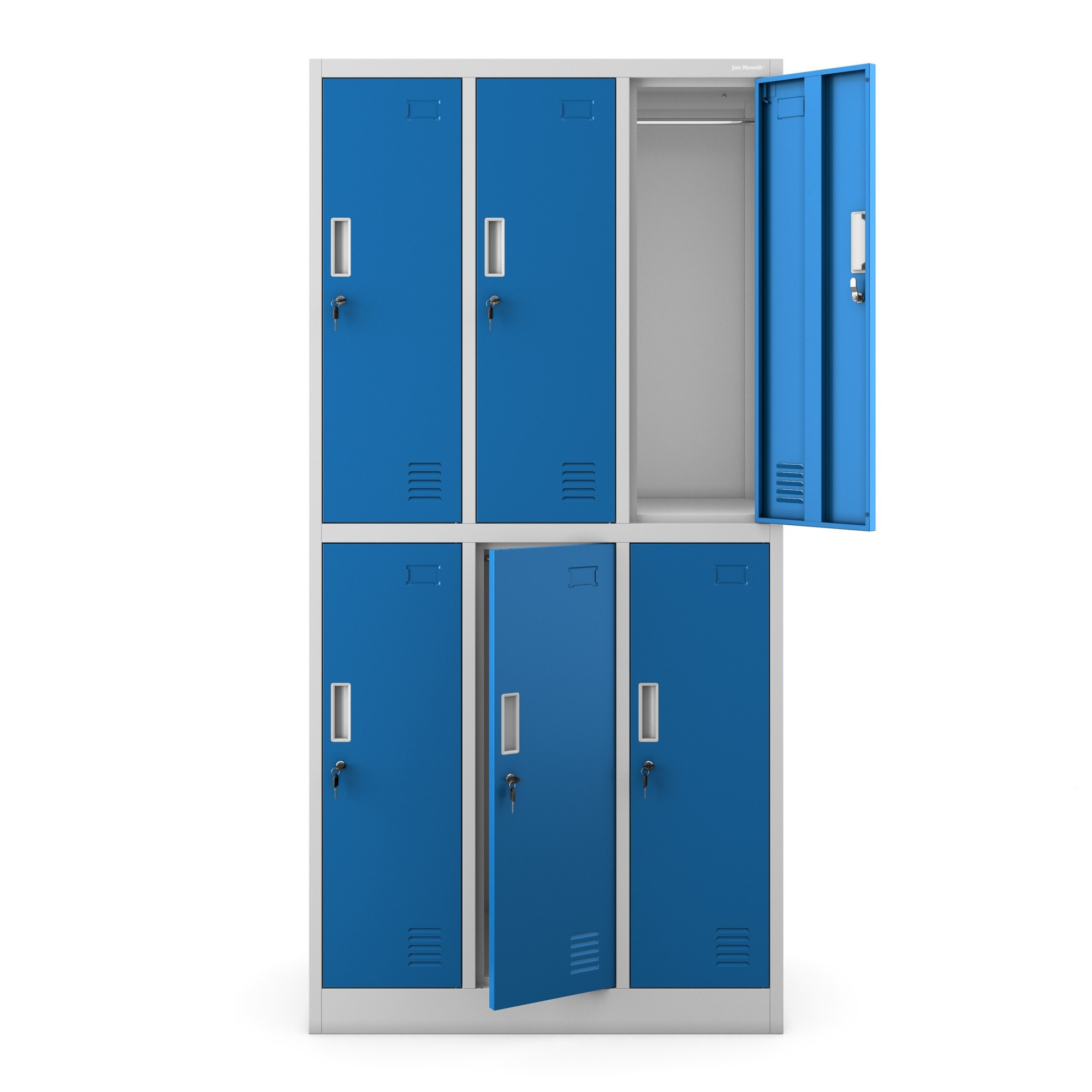 Každá z šiestich schránok je vybavená kvalitným zámkom na kľúč, ktorý spoľahlivo chráni uložené veci pred neoprávneným prístupom. Môžete si tak byť istí, že vaše osobné veci, pracovné odevy alebo dokumenty sú v bezpečí.