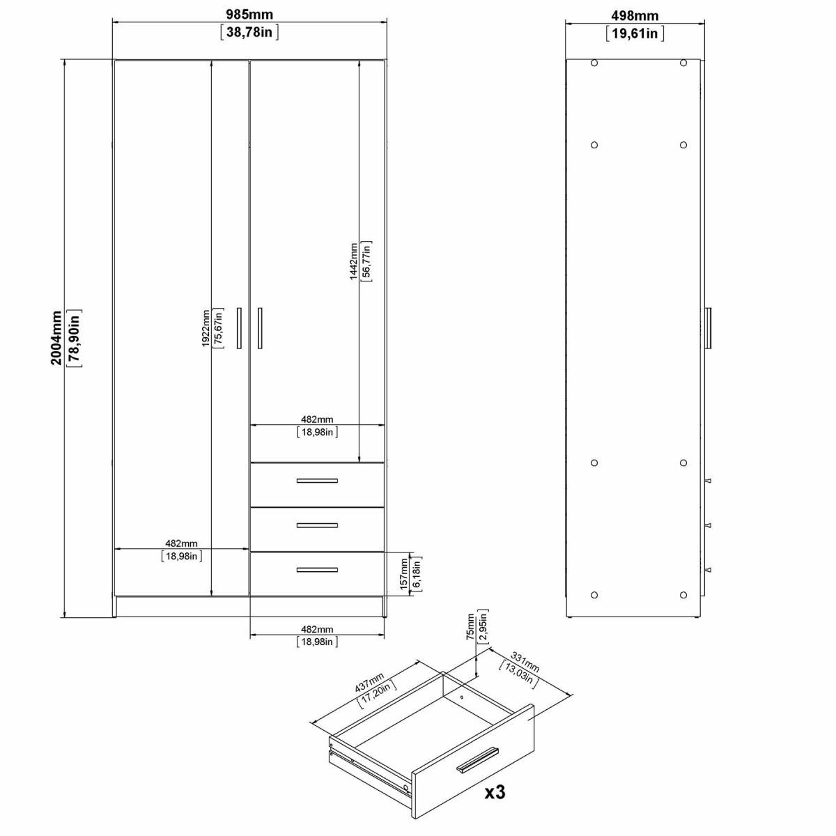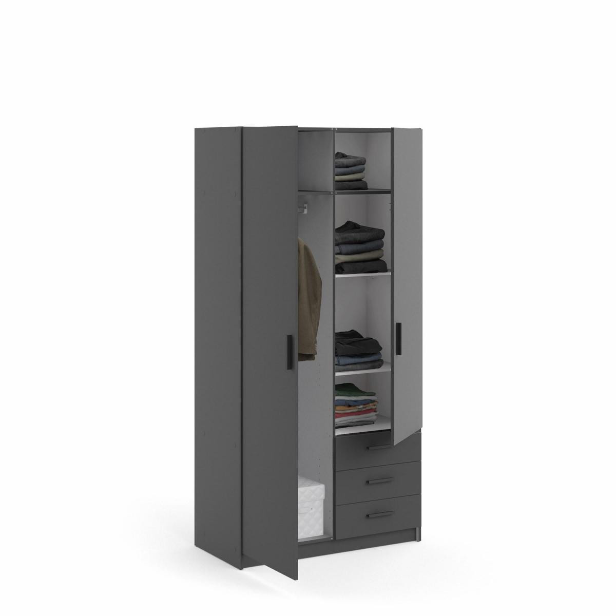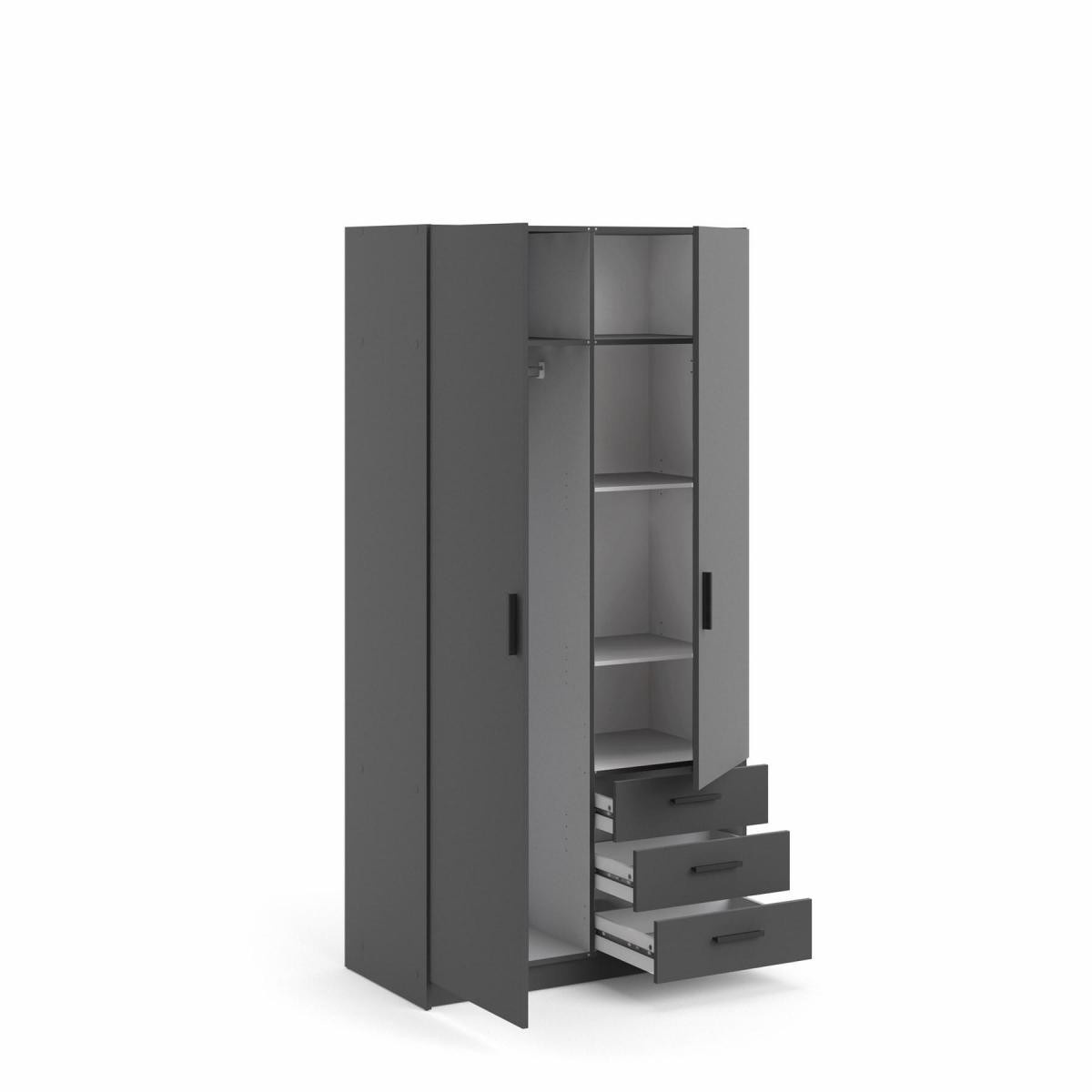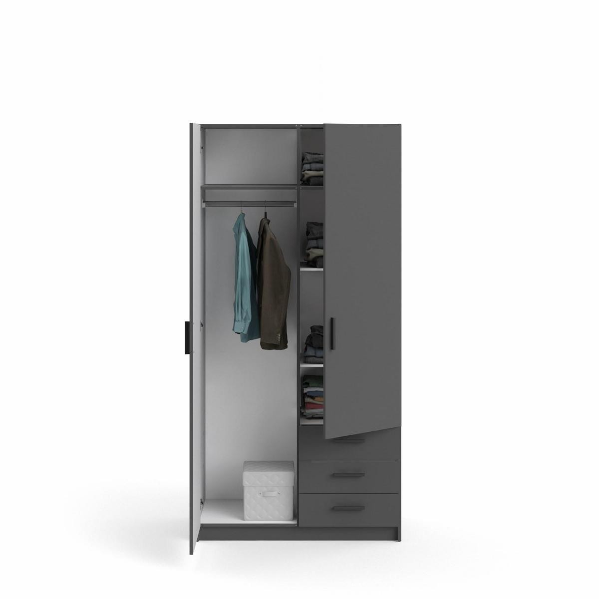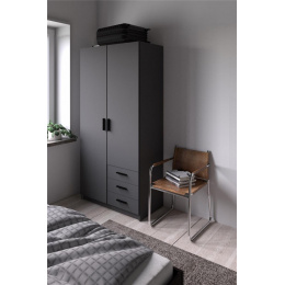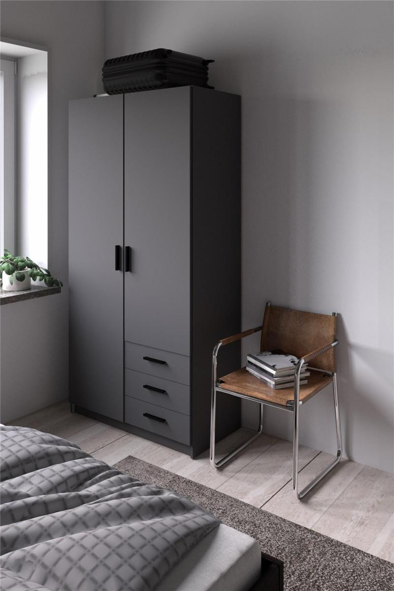 Šatníková skriňa Spike je vyrobená z laminátu, má kvalitné spracovanie, je vyrobená s ohľadom na životné prostredie a zároveň je praktická a funkčná. Ponúka dostatok úložného priestoru a všestranné využitie. Výborne sa hodí napr. na. do spálne, detských a študentských izieb, ale aj do pracovne alebo na chodbu. Skrinka je vyrobená v jednoduchom a nadčasovom škandinávskom štýle. Má rovné a čisté línie, ktoré vytvárajú útulný, relaxačný a príjemný interiér. Šatníková skriňa je vybavená aj praktickými zásuvkami, ktoré môžete využiť napr.pre spodnú bielizeň. Dodáva sa v demontovanom stave. Balenie obsahuje návod na montáž vrátane všetkých spojovacích prvkov. Zobrazené príslušenstvo a dekorácie nie sú súčasťou balenia.