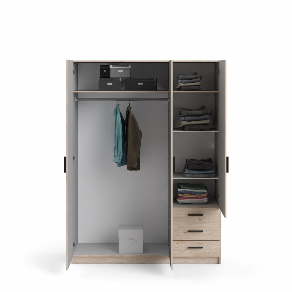 Šatníková skriňa Spike je vyrobená z laminátu, má kvalitné spracovanie, je vyrobená s ohľadom na životné prostredie a zároveň je praktická a funkčná. Ponúka dostatok úložného priestoru a všestranné využitie. Výborne sa hodí napr. na. do spálne, detských a študentských izieb, ale aj do pracovne alebo na chodbu. Skrinka je vyrobená v jednoduchom a nadčasovom škandinávskom štýle. Má rovné a čisté línie, ktoré vytvárajú útulný, relaxačný a príjemný interiér. Šatníková skriňa je vybavená aj praktickými zásuvkami, ktoré môžete využiť napr.pre spodnú bielizeň. Dodáva sa v demontovanom stave. Balenie obsahuje návod na montáž vrátane všetkých spojovacích prvkov. Zobrazené príslušenstvo a dekorácie nie sú súčasťou balenia.