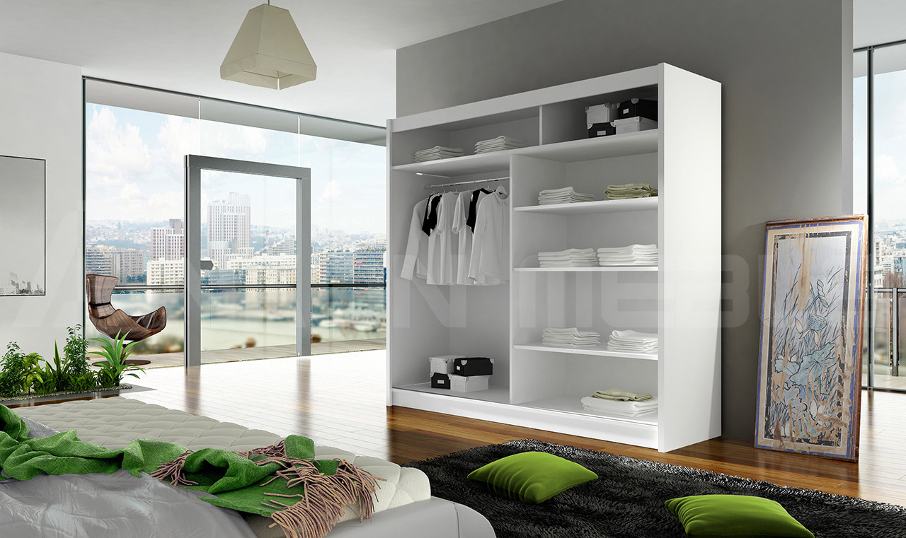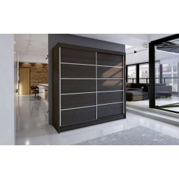 Skrinka je vyrobená z kvalitného laminátu. Vďaka svojmu vnútornému usporiadaniu ponúka dostatok úložného priestoru a posuvné dvere šetria miesto. Šatníková skriňa je vhodná do spálne, detskej alebo študentskej izby, predsiene a kancelárie. Vnútorné usporiadanie skrine je znázornené na fotografii. Skriňa sa dodáva v demontovanom stave a obsahuje montážny plán vrátane všetkých potrebných spojovacích prvkov. Zobrazené dekorácie nie sú zahrnuté v cene.