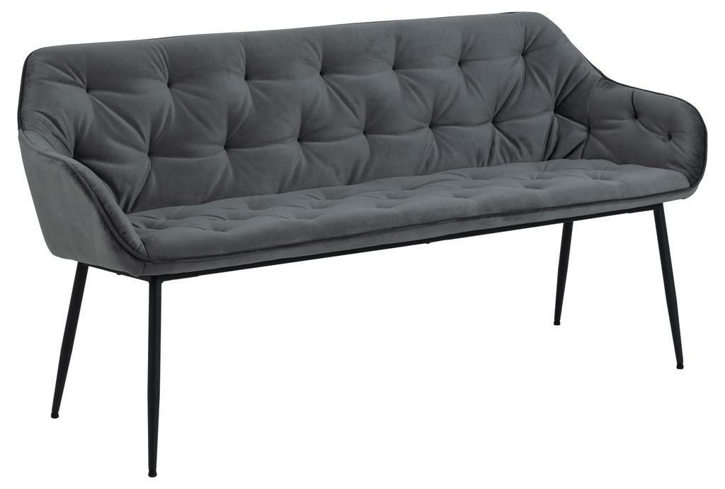Lavica Brooke je nábytok vhodný do jedálne, predsiene alebo čakárne. Prešívané sedadlo a operadlo sú vyplnené hustou polyuretánovou penou. Povrch tvorí príjemná na dotyk tkanina VIC fabric dark grey 28. Lavička spočíva na štyroch mimoriadne štíhlych nohách z kovu lakovaného práškovou farbou na čierno. Zospodu sú chránené špeciálnymi krytkami, ktoré zabraňujú poškodeniu podlahy. Lavička sa hodí do interiérov v modernom alebo glamour štýle. Počet kartónov: 1 Rozmery kartónov: 169x54x47cm Hmotnosť kartónov: 21kg